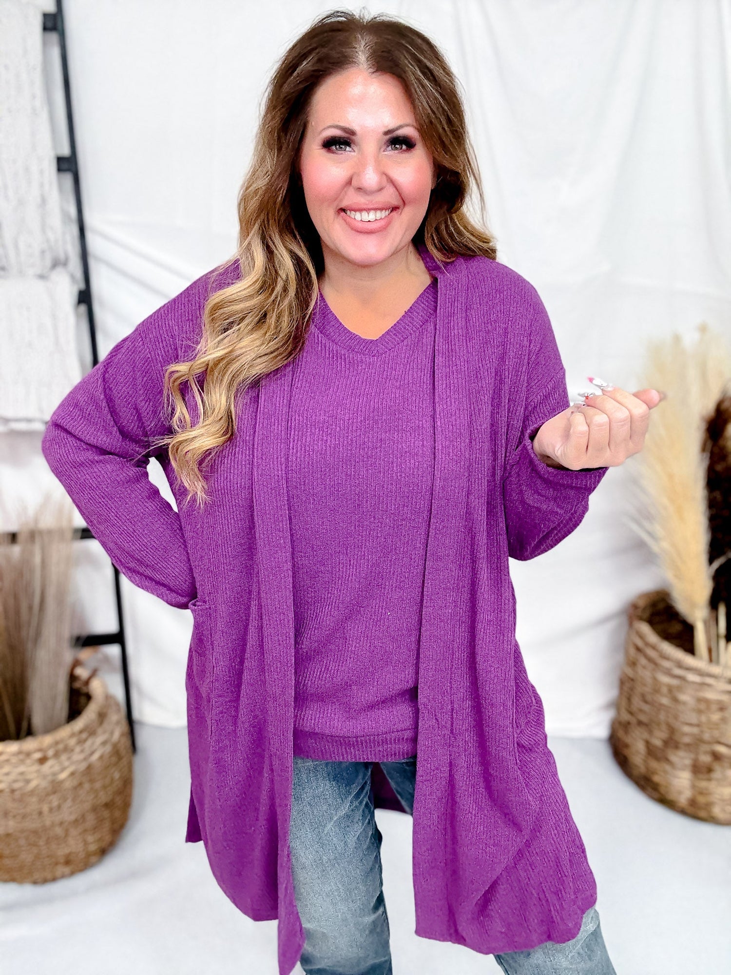 2 Piece Set With Long Sleeve Top & Cardigan (8 Colors)