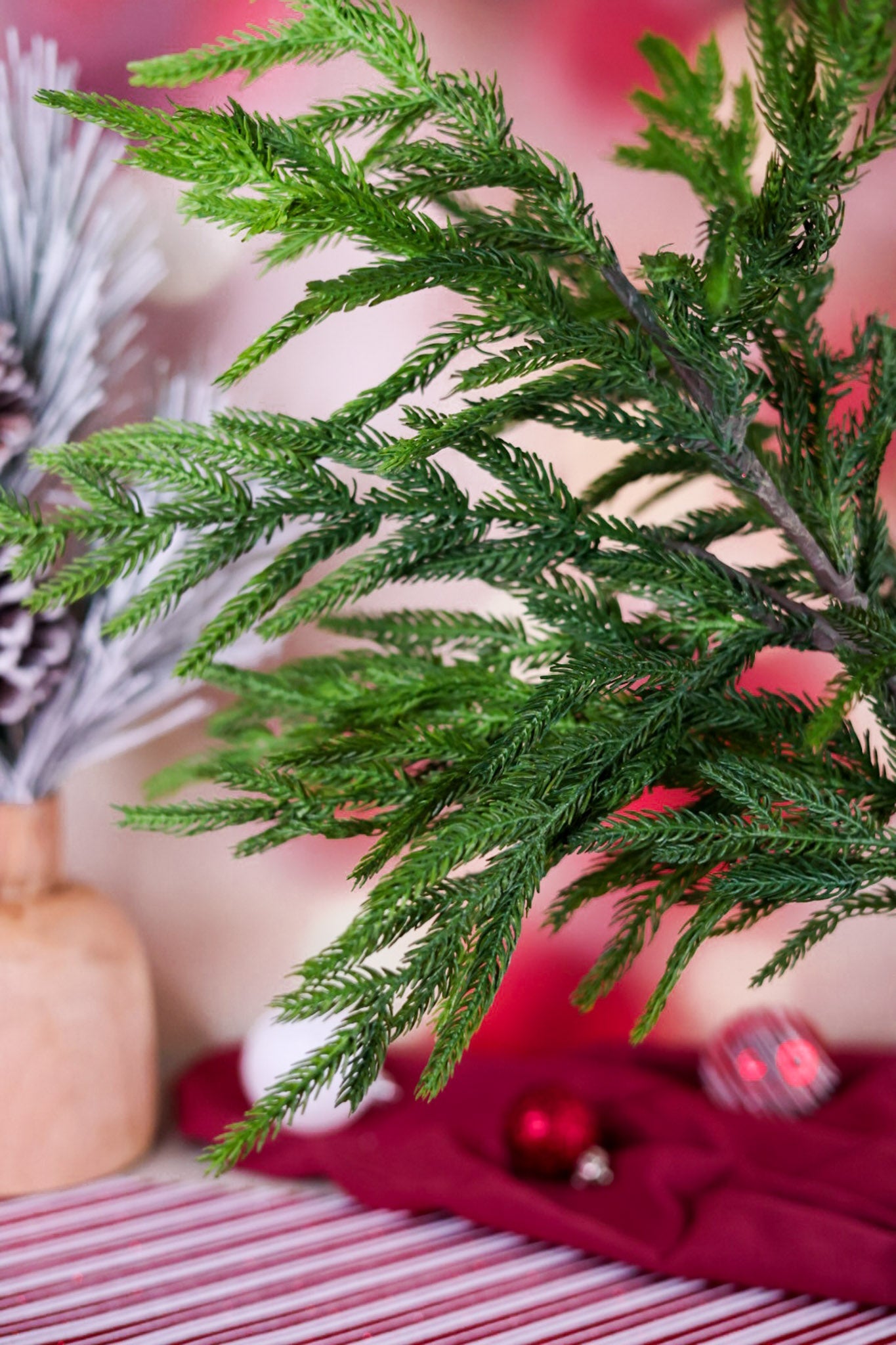 Add a splash of holiday magic to your decor with this 33" Norfolk Pine Spray! Made from vibrant faux greenery, it brings the fresh look of pine without any mess. Perfect for decking out your wreaths, garlands, or festive centerpieces, this pine spray will have your home feeling merry and bright in no time.