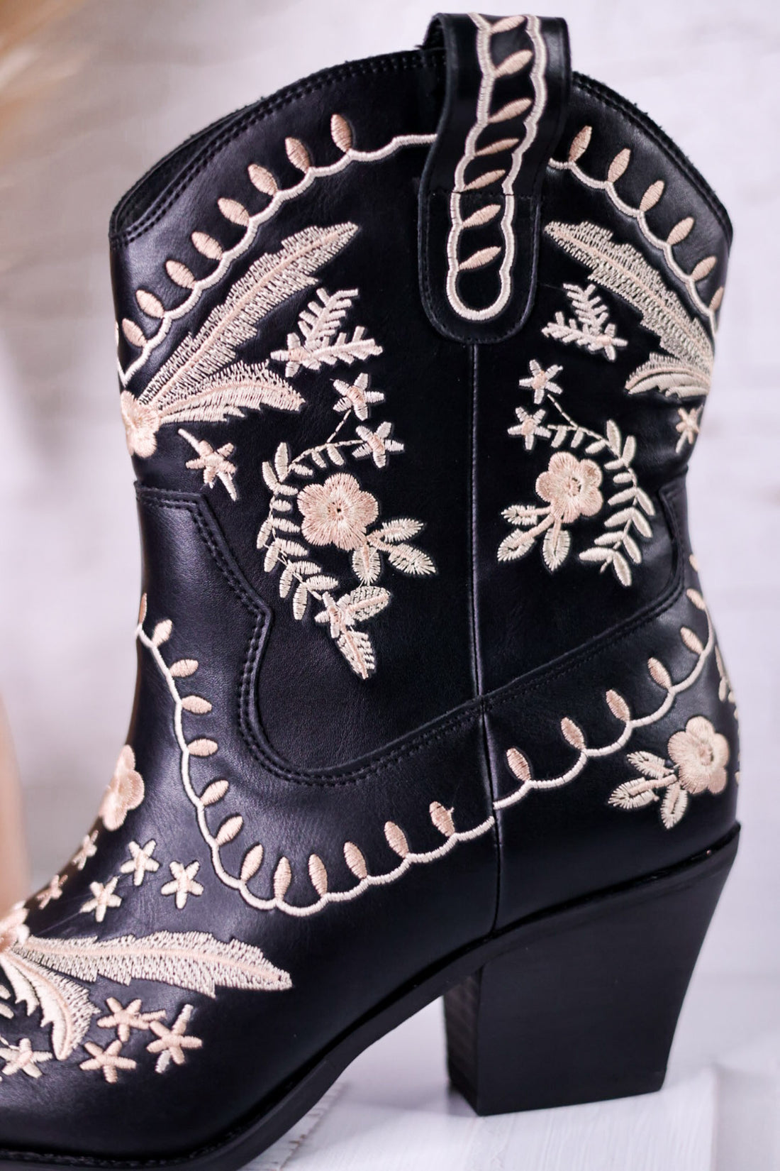 Step out in style with these ankle boots featuring charming floral embroidery and a fun western-inspired design. Perfectly blending flair and adventure, the Black Let's Go Girls Boots add a playful touch to any outfit while keeping you ready to explore!