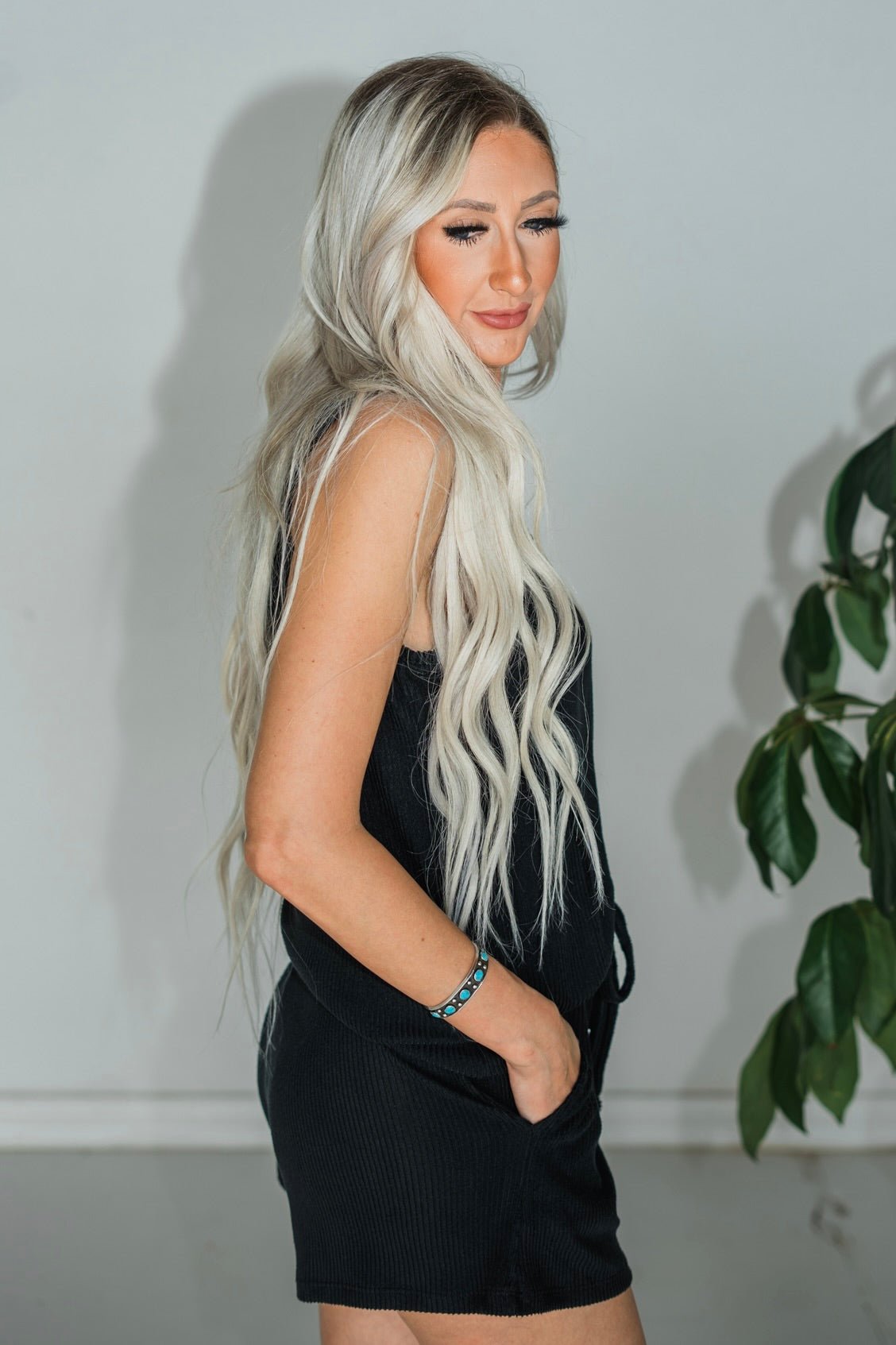 The Black Rib Dream Double V-Neck Short Set combines elegant style with cozy comfort. Its elastic waistband conforms to your shape, while the pockets add a practical touch. This set will quickly become a must-have in your wardrobe, making all your dreams come true. The ribbed material flatters every curve with subtle allure, a stylish twist on Softies’ delicate and velvety Dream fabric. The drawstring elastic waist gently molds to your form while the pockets bring a practical touch. Destined to become a closet staple, this set is literally what dreams are made of.