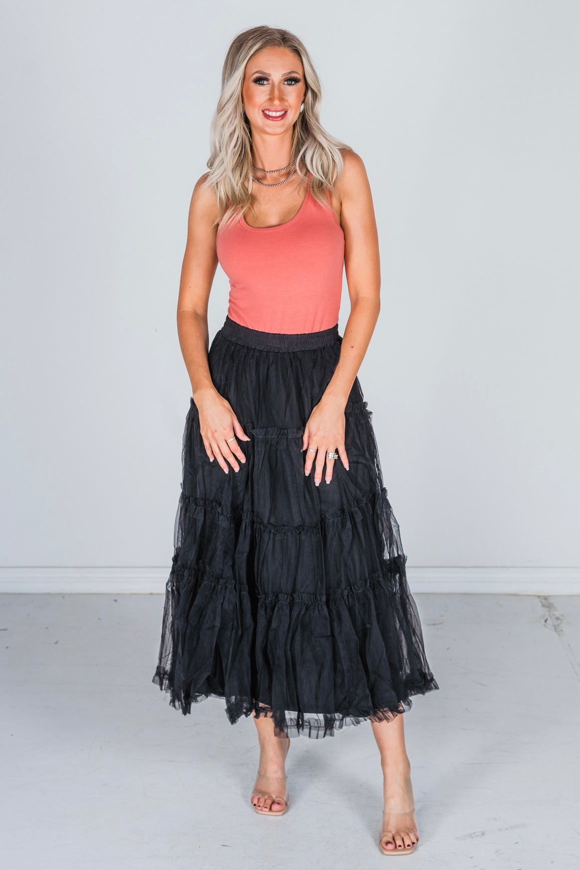This skirt is all about adding some playful volume to your outfit, with its flouncy ruffles and tulle mesh material. You'll feel like a modern-day ballerina while still looking stylish and on-trend.
