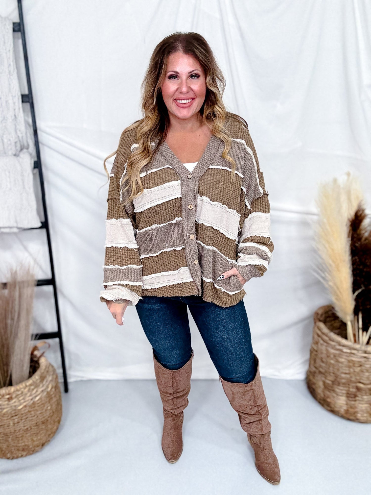 Embrace a splash of color with this playful brown combo washed color block and patchwork cardigan. Featuring a delightful mix of green tones blended seamlessly with bold color blocking and charming patchwork details, this button-down long sleeve piece adds vibrant personality to any outfit.