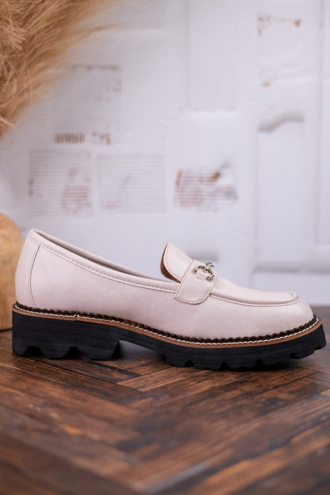 Step up your shoe game with Brownie Points Ivory Loafers! These stylish loafers feature an ivory color with a chic silver chain detail across the top. The chunky soles provide both comfort and a trendy edge. Elevate your look and earn some brownie points with these must-have loafers!