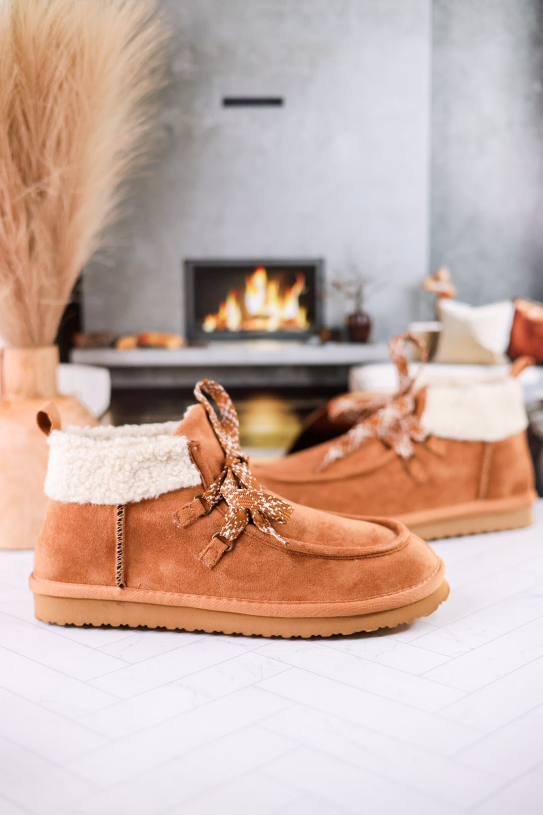 Stay cozy and stylish with our high top booties featuring a soft, plush lining. The lace up details and vegan micro suede material add a touch of sophistication to these tan colored booties. Plus, with a cushioned footbed, they will provide ultimate comfort for your feet.