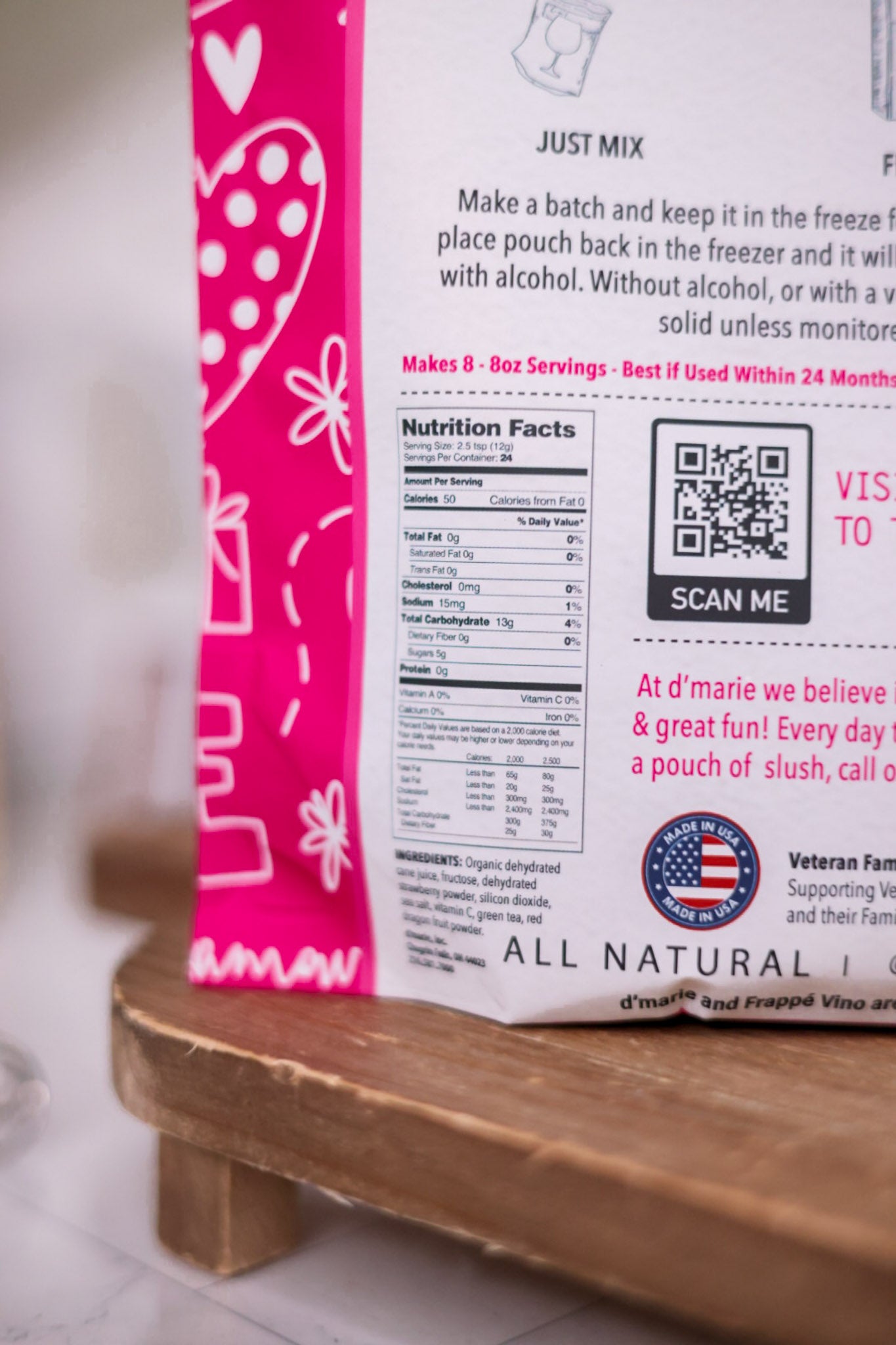 1.Tear open pouch from either notched side.2. Pour the listed wet ingredients printed on the back into the pouch.3. Either mix well with large spoon and tightly seal pouch, or tightly seal pouch and gently shake to mix contents thoroughly.4. Freeze for 4-6 hours.
