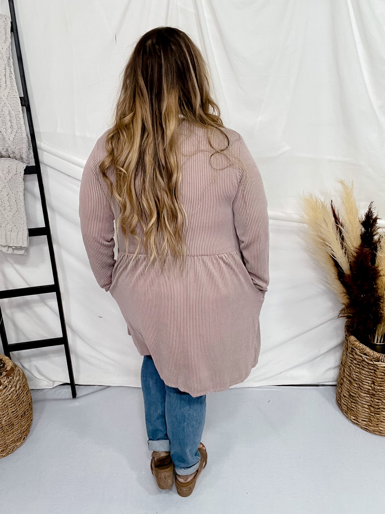 Coco Long Sleeve Ribbed Knit Open Front Cardigan