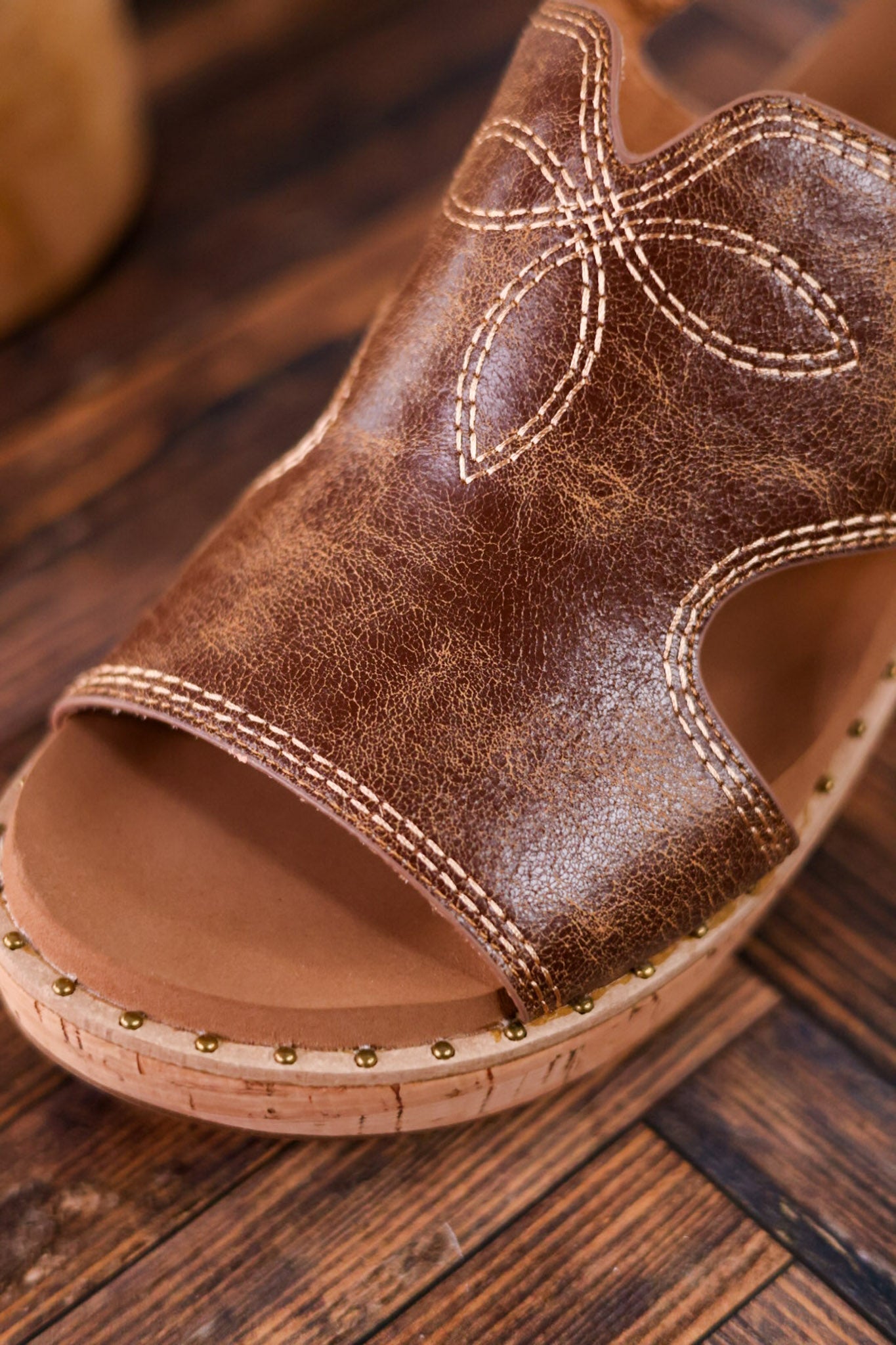 Rock these cognac faux leather wedges and feel the difference. Cork heels deliver comfort with lift, while delicate stitching adds personality to your everyday style. Go from casual to fabulous instantly.