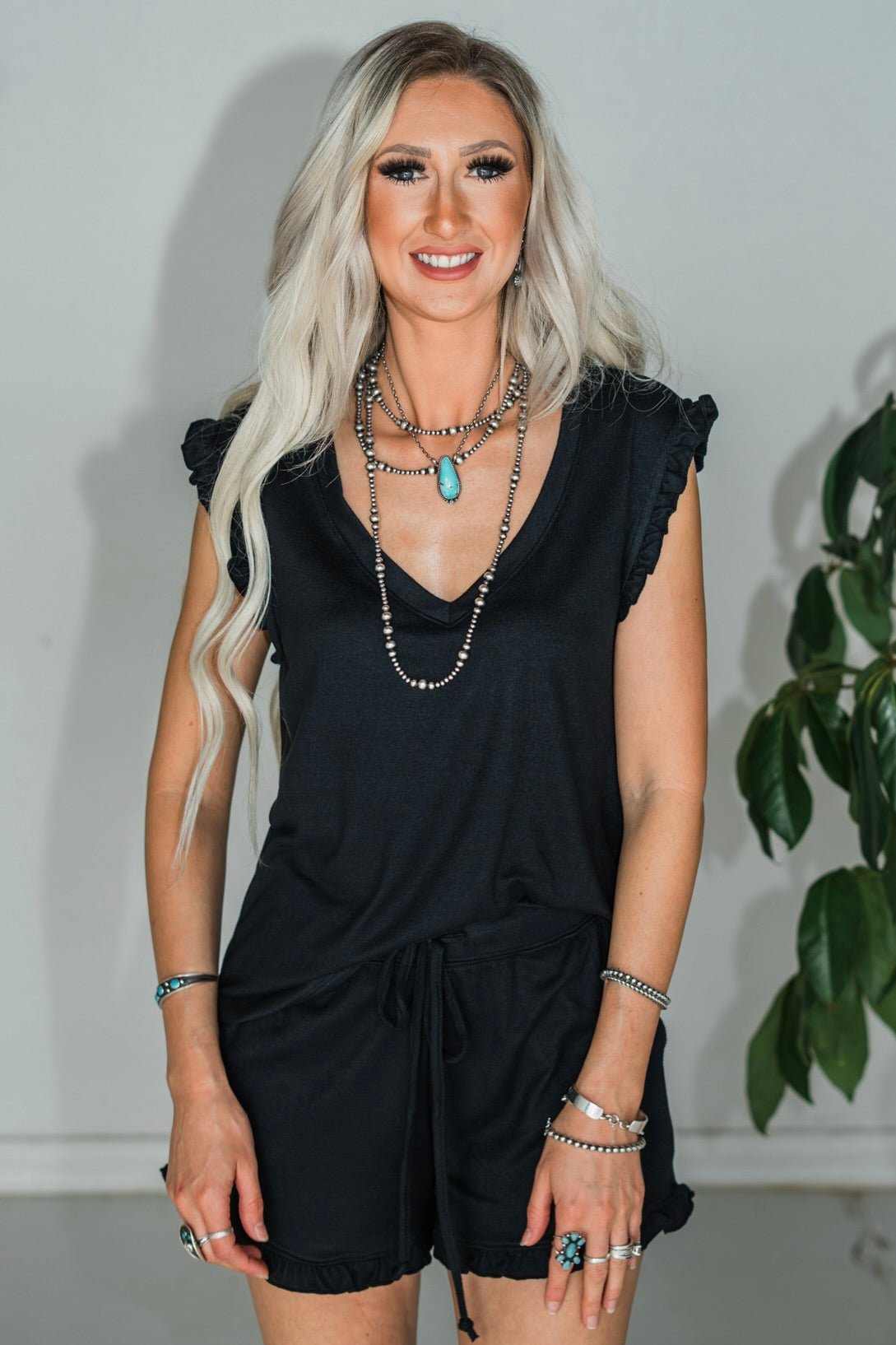 Say hello to the Dream Ruffle Top & Short Set, the perfect addition to your loungewear wardrobe. Ruffles adorn this fabulous set, adding a touch of femininity, while the shorts have a drawstring elastic waist providing a comfortable and cozy fit. The buttery soft, bestselling Dream fabric caresses your skin in a cocoon of luxurious comfort. With a drawstring elastic waist, the shorts offer a relaxed fit that feels like a gentle hug, perfectly framing your silhouette. And of course, we cannot forget a woman’s crucial companion: pockets. Practical and breezy, this is a set you’ll never want to take off.