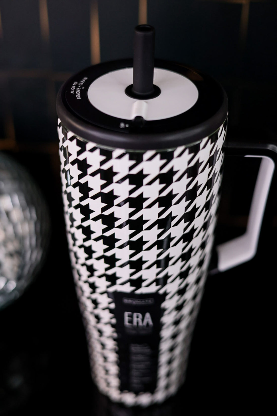 The Houndstooth 40oz Era tumbler features a secure lid to prevent spills, keeping your beverages fresh and mess-free. Equipped with a ColdKey™ stainless steel straw and BevGuard™ technology, it ensures your ice stays frozen for a full 24 hours. The design fits comfortably in most cup holders, making it the perfect companion for all your outings.