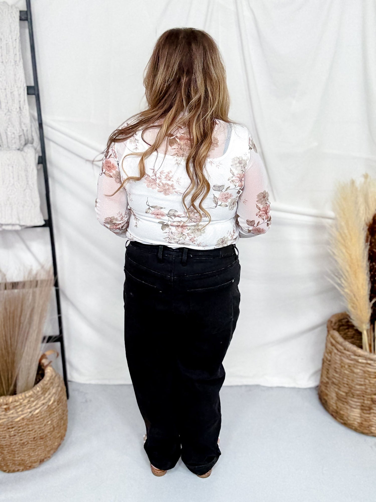 This Ivory & Taupe Floral Print Long Sleeve Mesh Top is perfect for layering with a light, breezy feel. The vintage taupe floral pattern adds a touch of charm, making it a playful and stylish choice to brighten up any outfit.