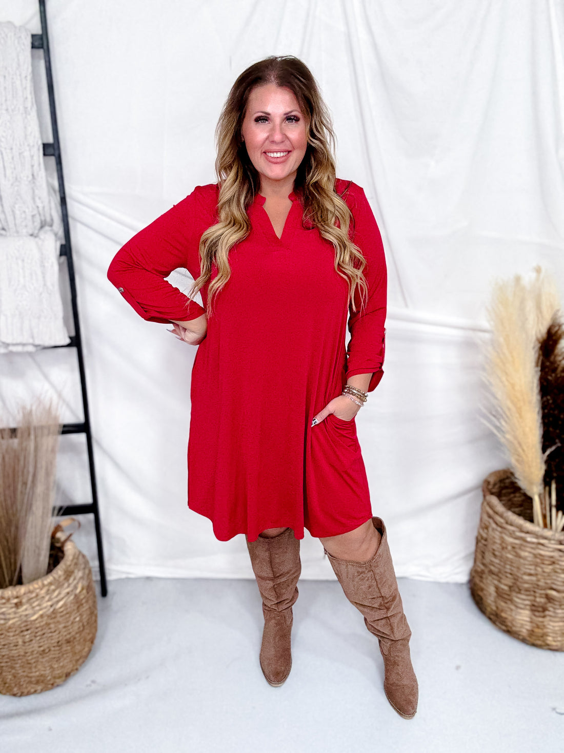 Step out in style with this jewel red long sleeve A-line dress! The above-the-knee cut is perfect for pairing with chic heels or casual kicks. The vibrant jewel red color adds a cheerful pop to any outfit, making you feel comfortable and confident no matter the occasion.