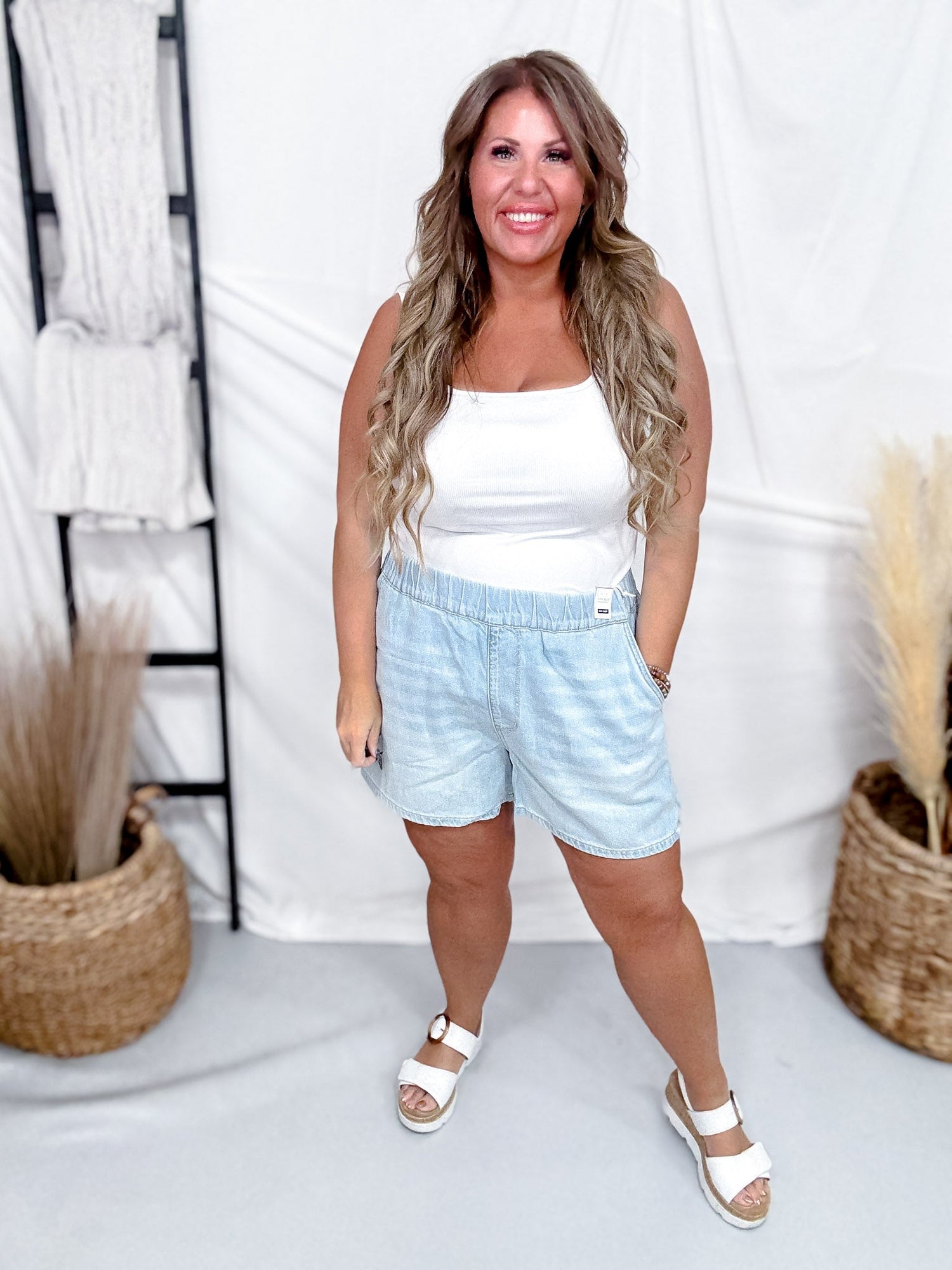 Meet your new go-to pair: Judy Blue's high-waist featherweight boxer denim shorts that blend comfort with contemporary style. Featuring an elastic waistband and a relaxed silhouette through the hips, rise, and leg opening, these shorts let you move freely without sacrificing that effortlessly cool vibe. Perfect for those days when you want to look put-together while feeling like you're wearing your favorite pair of shorts.