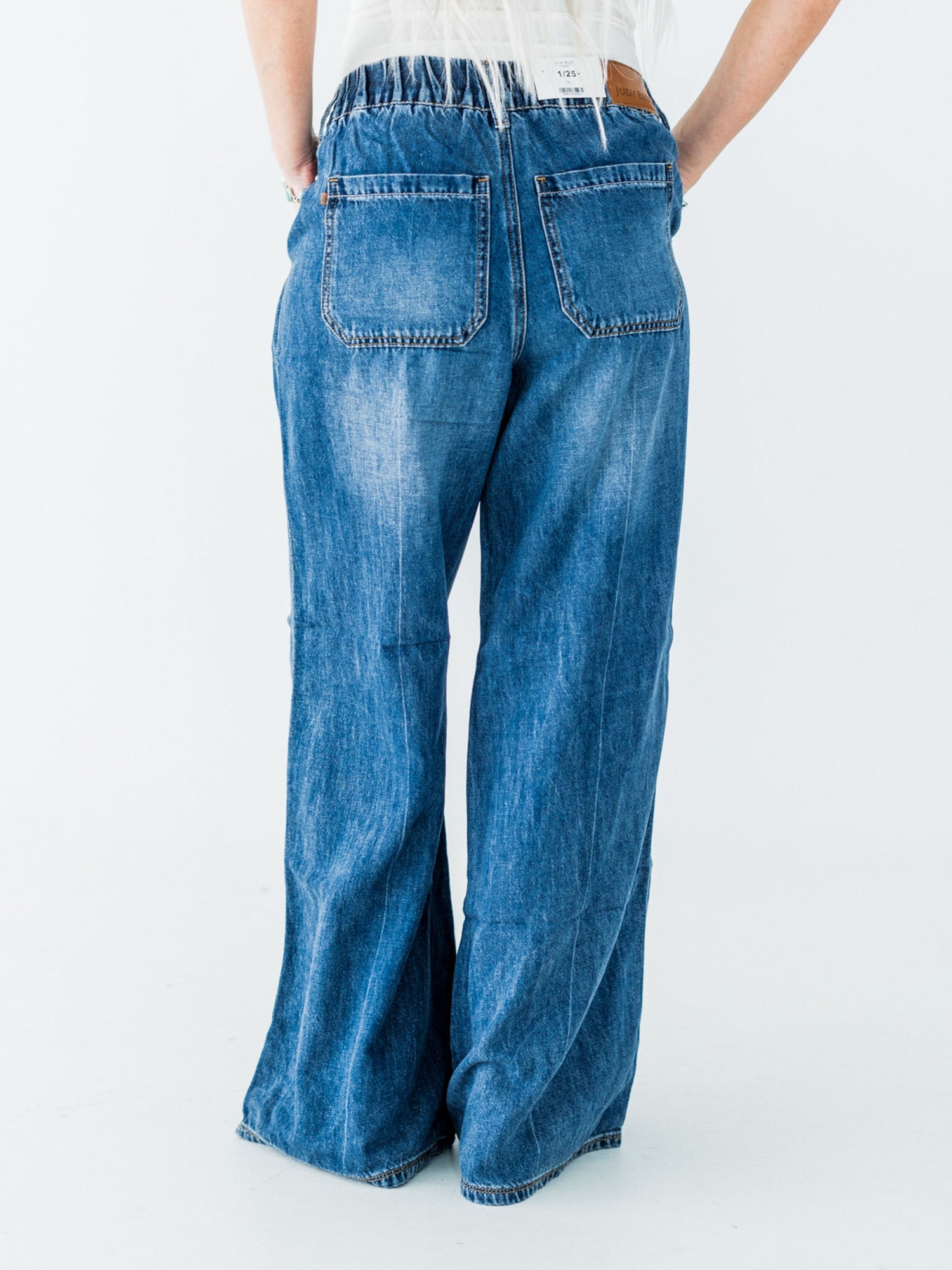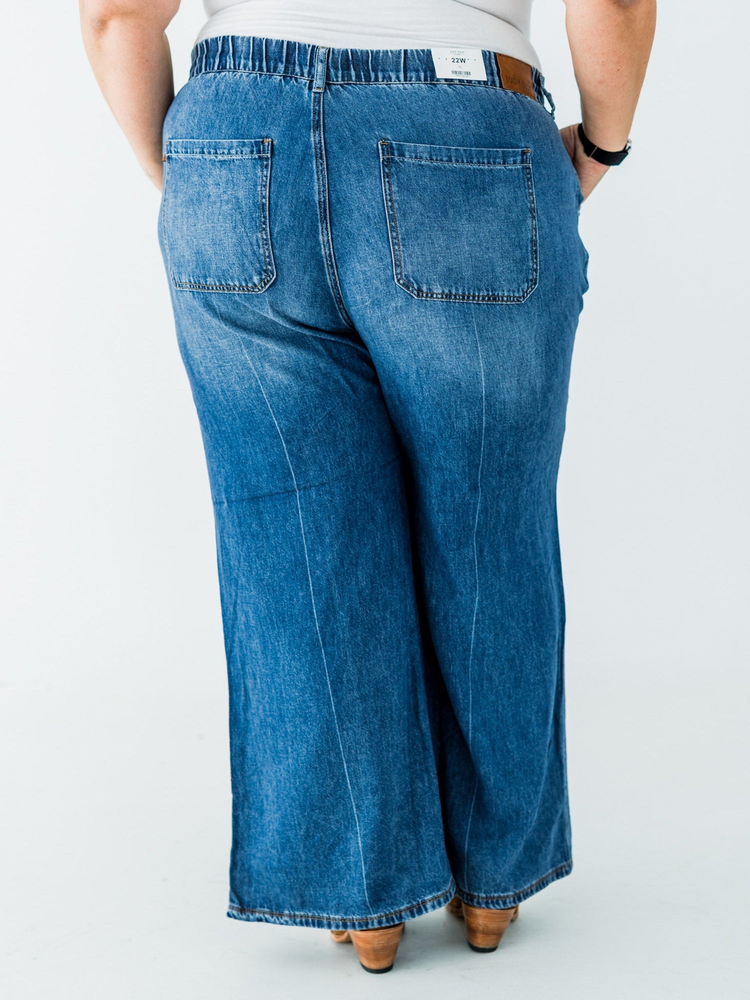 Step into effortless style with these Judy Blue High Waist Palazzo Jeans. Crafted from featherweight denim, they offer breezy comfort while flaring into a chic palazzo silhouette. The high waist pairs perfectly with the drawstring detail, giving you both shape and comfort.