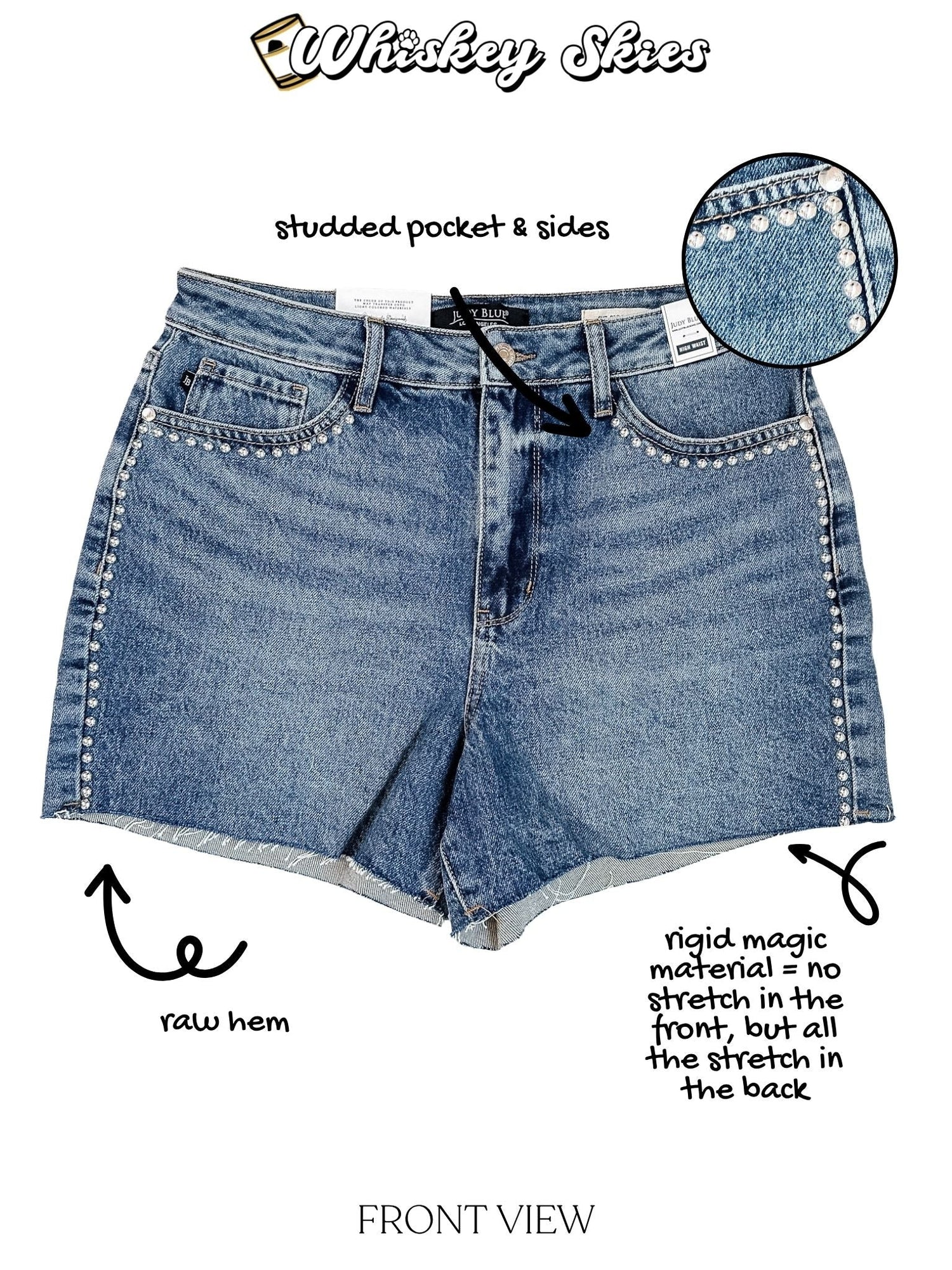 Judy Blue High-Waist Rigid Magic Denim Shorts W/ Studding Details