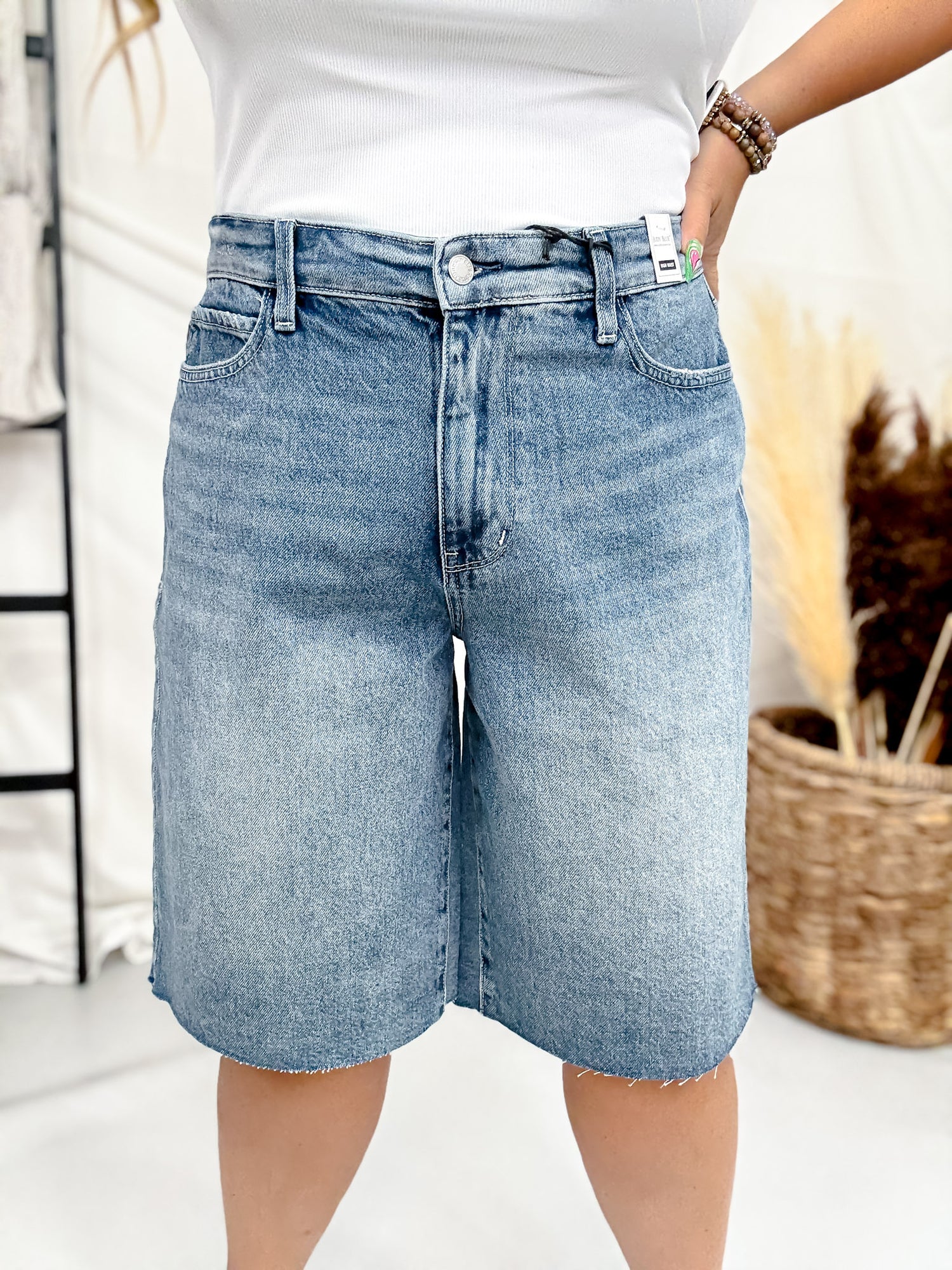 Judy Blue's high waist jorts feature Rigid Magic technology—a structured front that flatters your silhouette paired with a stretchy back for comfort. The high waist design elongates your frame while the innovative construction keeps you looking polished all day long.