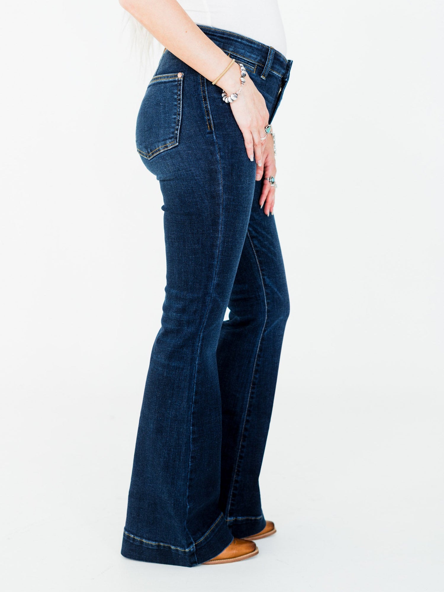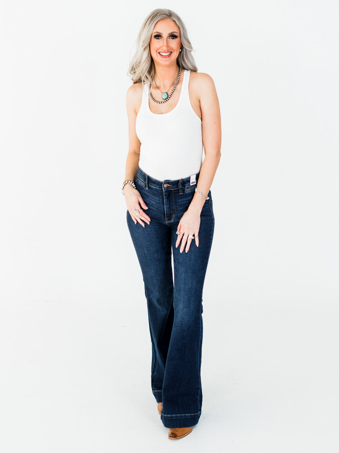 These Judy Blue High Waist Trouser Flares blend classic blue denim with a flattering high waist design to enhance your silhouette. The trouser flare cut offers a stylish, timeless look while providing comfortable movement. Perfect for elevating everyday outfits with a touch of vintage-inspired charm.