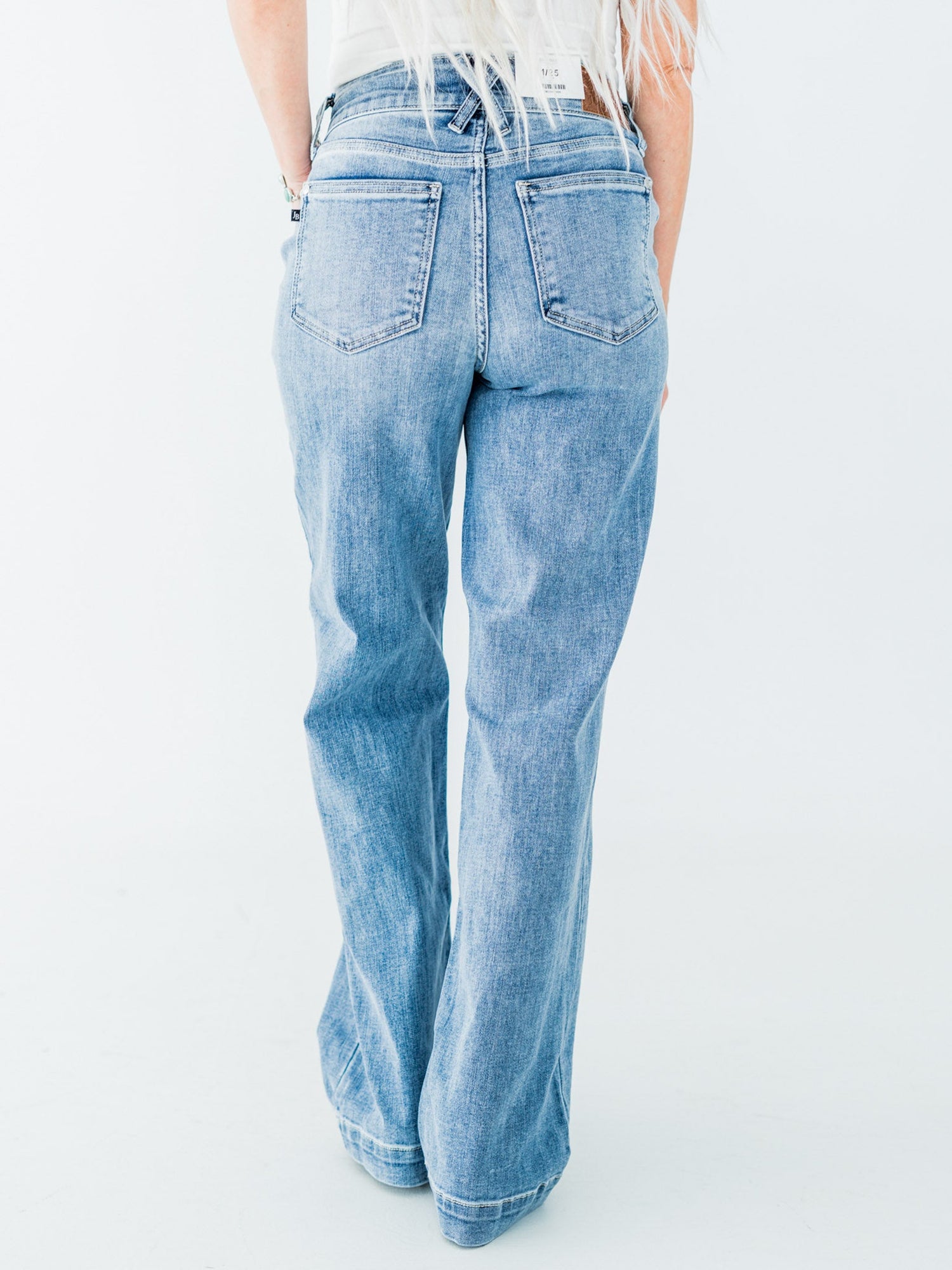 Elevate your denim game with these Judy Blue High Waist Trouser Wide Leg Jeans—the perfect blend of vintage vibes and modern comfort. Designed with a flattering high waist and flowing wide-leg silhouette, these classic blue jeans deliver that effortless, polished look you've been craving.
