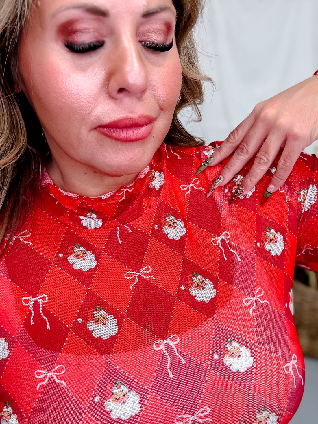Step up your style game with the Keigan Mesh Top—Santa's Signature Bow edition! This fun piece boasts lettuce-edge hems, a chic mock neck, and lightweight sheer mesh that’s perfect for layering with your favorite holiday looks. Add a festive twist to your wardrobe and shine all season long!