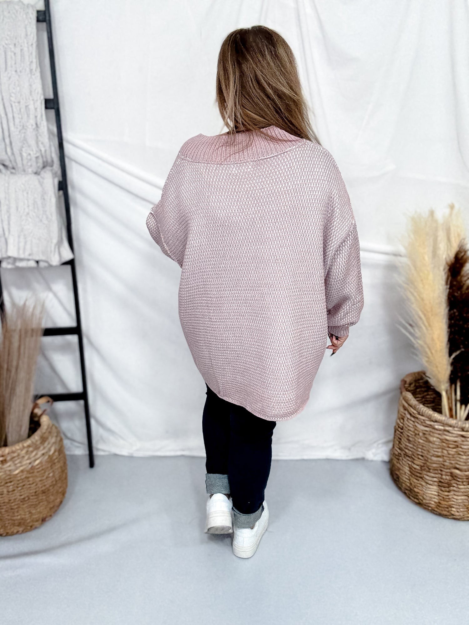 Snag this adorable two-tone v-neck sweater in ivory and lilac for instant cozy-chic vibes. The soft knit fabric feels as good as it looks, making it your new go-to layer for everything from coffee runs to weekend hangouts.