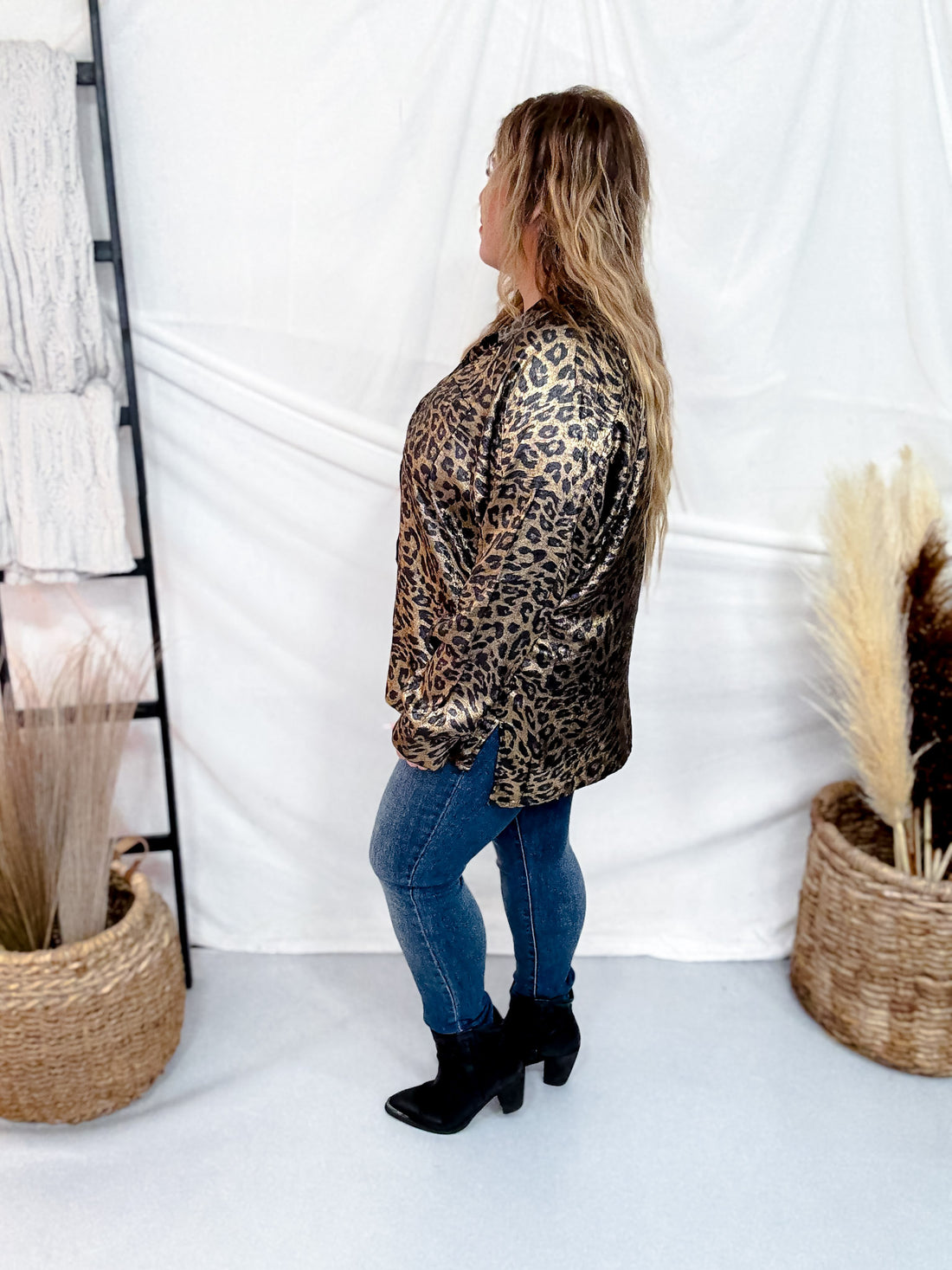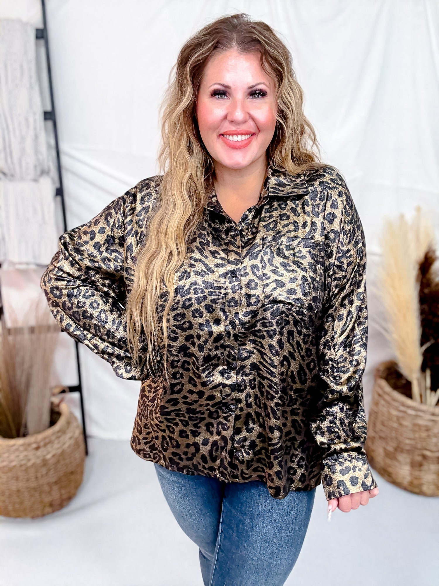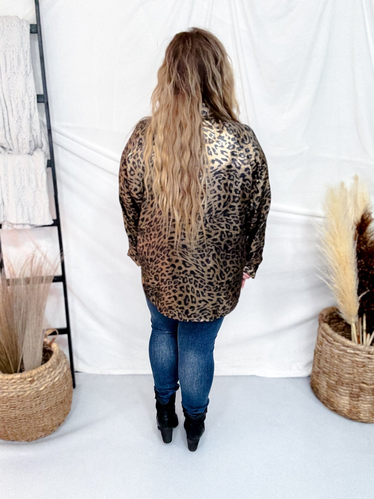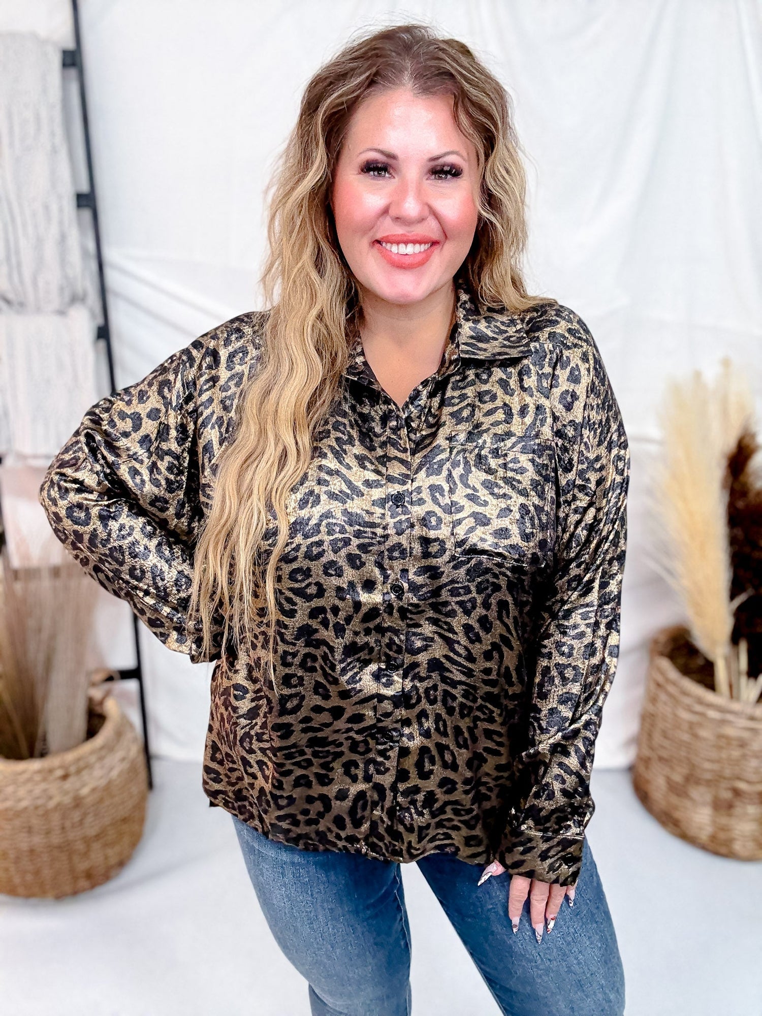 Add a bold edge to your look with this statement leopard print button-down shirt. The relaxed silhouette and silky finish give it a luxe, effortless feel perfect for dressing up or down. Pair it with denim for a casual-cool vibe or tuck it into trousers for a polished ensemble.