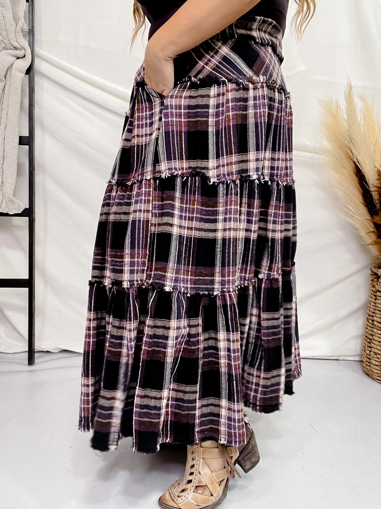 Get ready to rock your plaid-loving heart away with this stylish mineral wash skirt! With its cute tiered design and convenient pockets, this skirt will have you in a good mood all day long.
