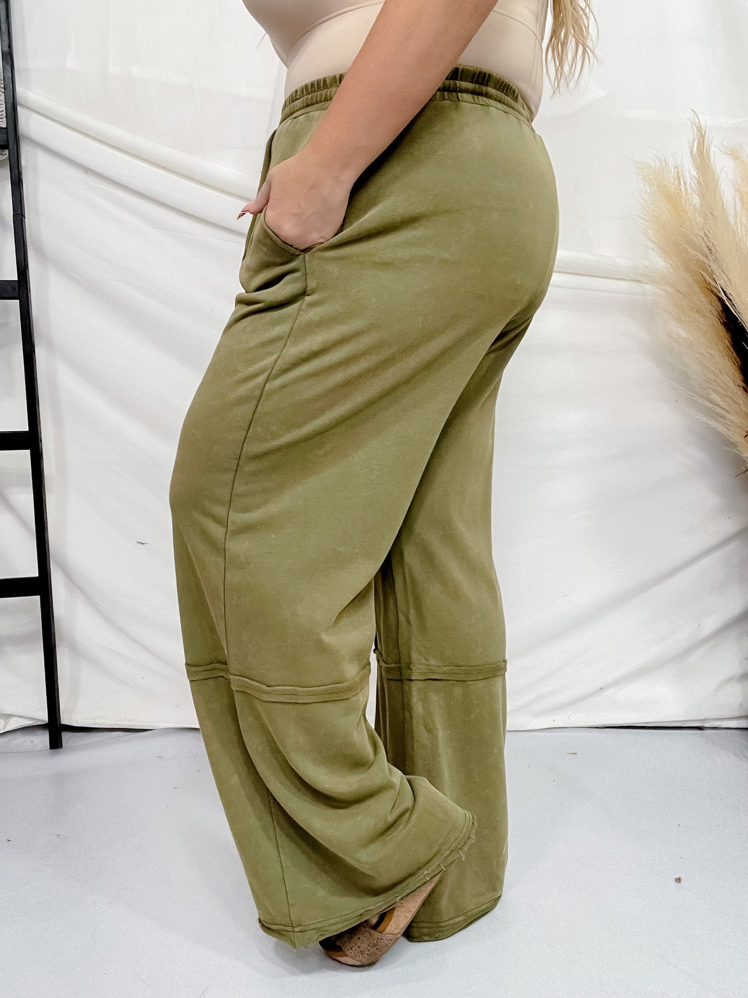 Experience ultimate comfort and style with these acid-washed sweatpants! Get ready to make a fashion statement with the unique seam detail and effortlessly cool olive color.