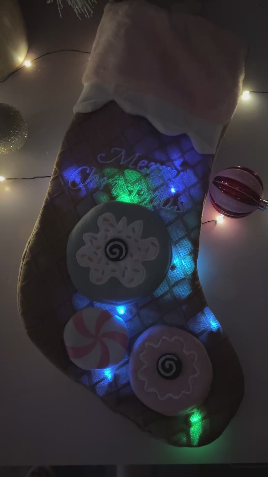 Bring a burst of whimsy to your holiday decor with the Pastel Bakery Light Up Stocking. This charming stocking lights up and flashes with playful colors, adding a fun and festive glow to your mantel or tree. Its soft pastel tones and bakery-inspired design make it a delightful treat for eyes of all ages.