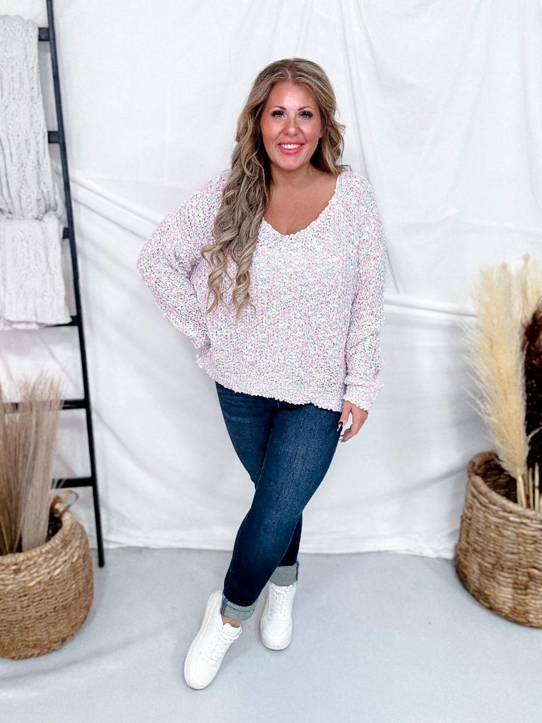 Wrap yourself in cozy charm with this delightful pastel rainbow popcorn knit pullover. The textured popcorn knit adds visual interest and dimension, while the classic boat neckline offers a timeless, flattering silhouette. Cut in a relaxed fit for effortless comfort and easy layering, this sweater brings a cheerful pop of color to any wardrobe.