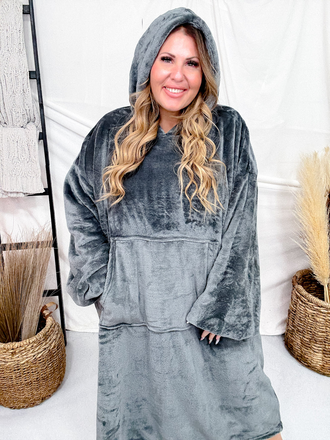 Hate having to get up and leave the warmth of a throw behind? Now you can wear the same super soft plush patterns you love while staying warm throughout the house! These hooded blankets are extra large to fit everyone with elastic sleeve cuffs and a kangaroo pocket.