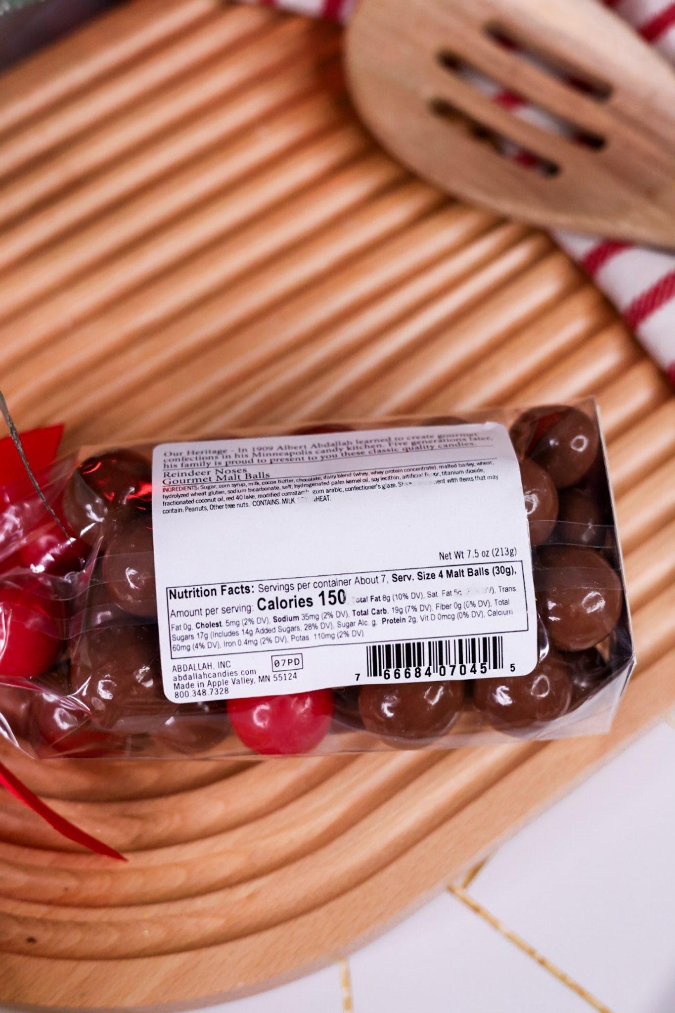 Rudolph's favorite treat! These playful Reindeer Noses are milk chocolate-covered malted milk balls that capture the magic of Christmas. Crispy, malty centers meet smooth chocolate in every bite—the perfect festive indulgence for holiday celebrations and stocking stuffers.