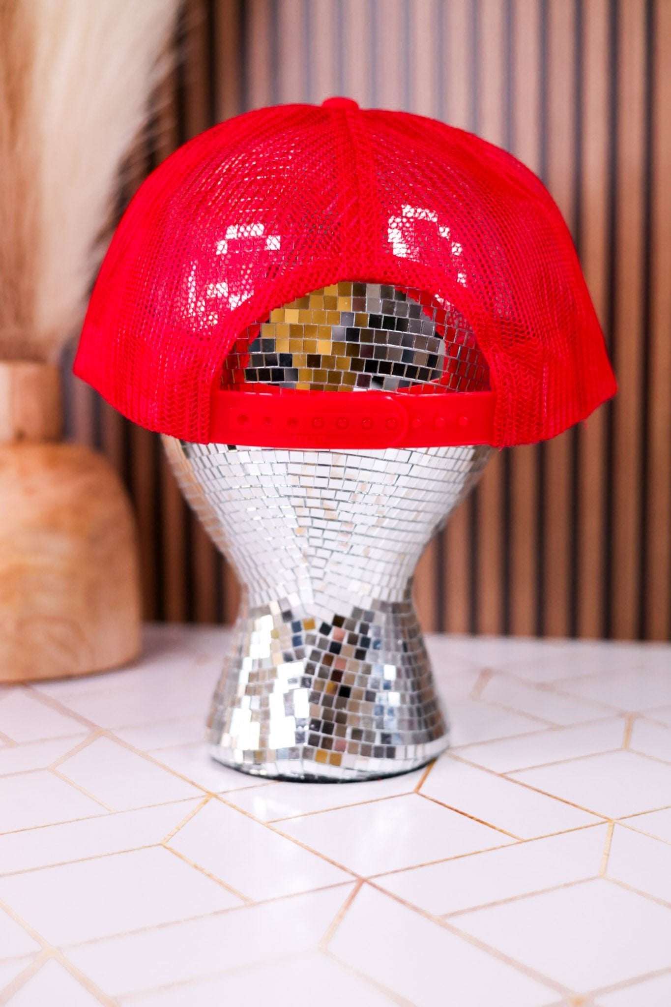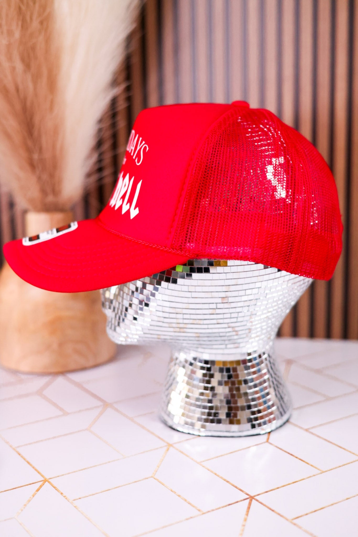 Show off your weekend spirit with this bold red trucker hat featuring crisp white "Saturdays Are For Raisin' Hell" text. The adjustable snap closure ensures a comfy fit for any head size, while the breathable mesh back keeps you cool during fun-filled days. Perfect for those who know how to make every Saturday unforgettable.