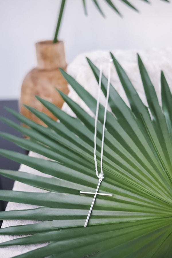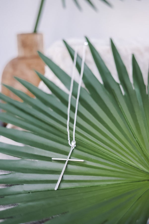 Stunning 16" silver long cross neckless. Brand: Leslie Curtis Jewelry Designs