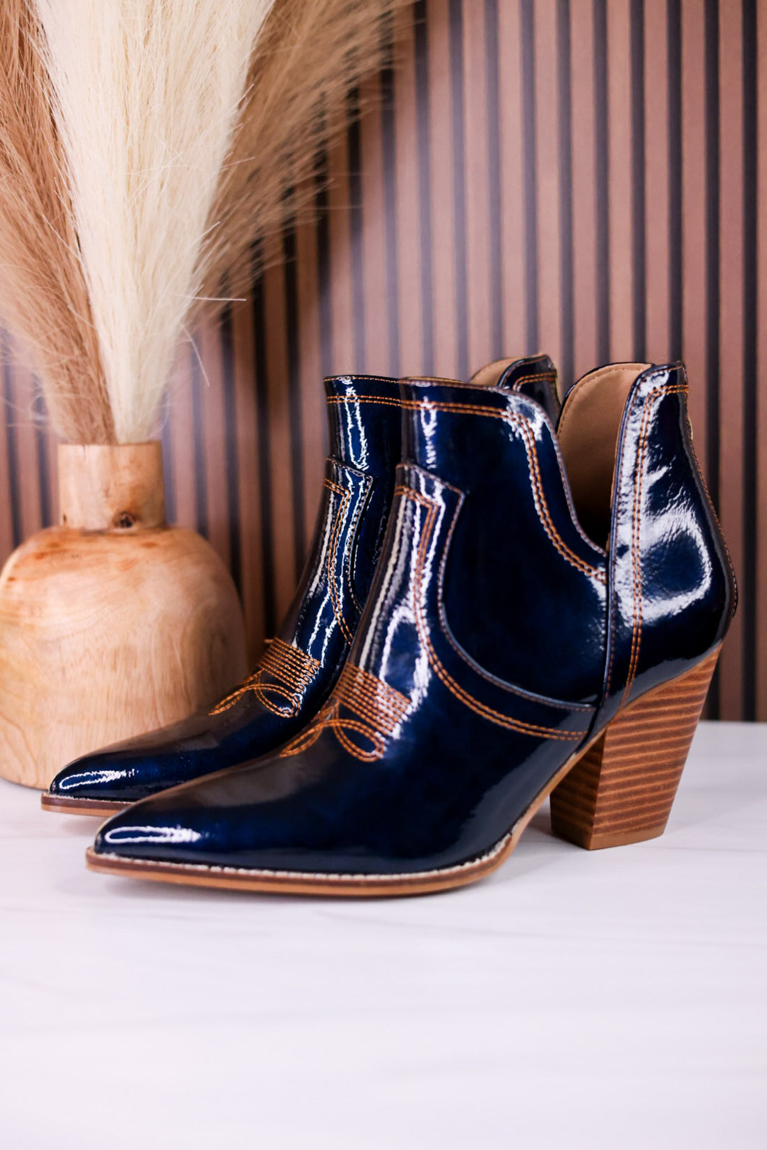 Step out with a splash of bold style in the Smoke Show Teal Patent Leather Western Ankle Boots. Featuring eye-catching teal patent leather and playful contrasting western stitching, these boots bring a fresh twist to classic western flair. The western heel adds just the right lift to keep you dancing, strutting, or simply turning heads wherever you go. Perfect for those ready to make a statement with every step!