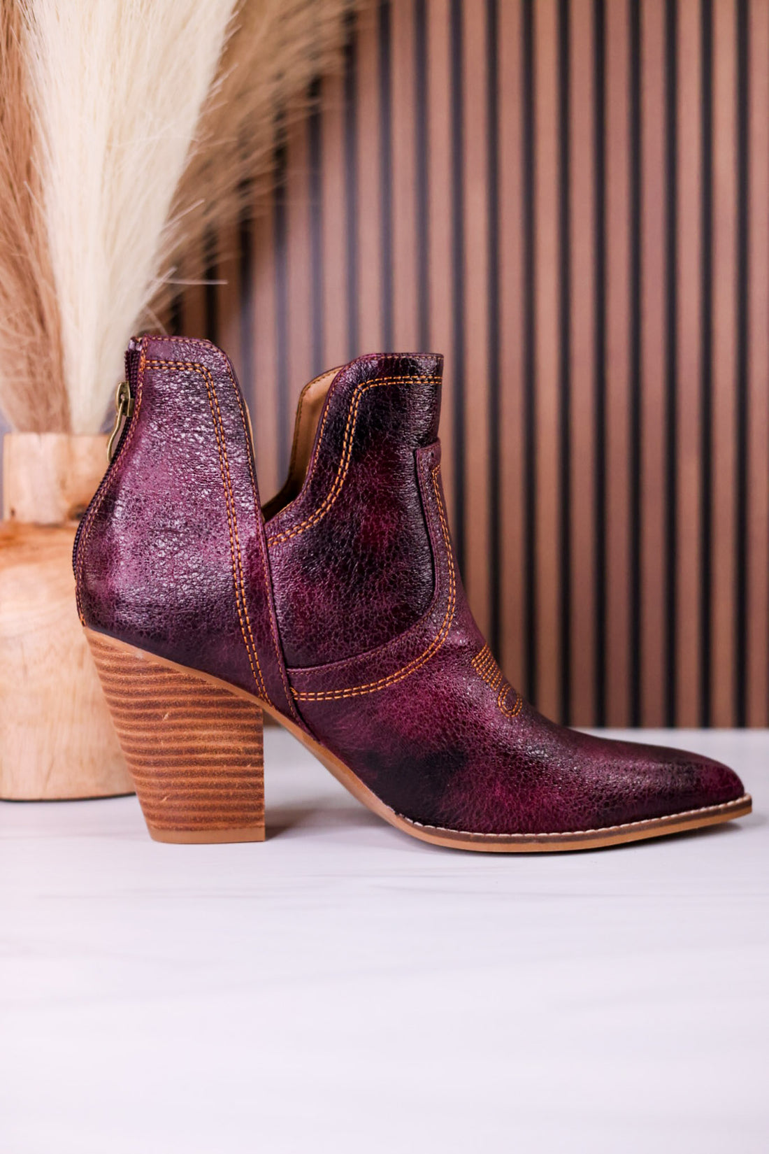 Smoke Show Wine Faux Leather Western Ankle Boots