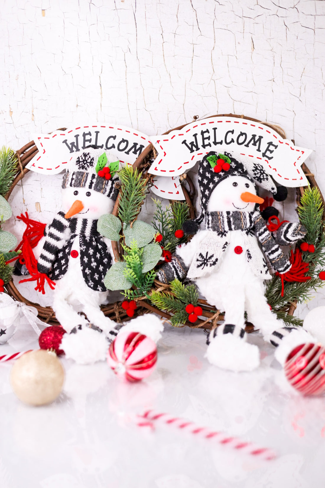 Bring festive cheer to your doorstep with the Snowflake Wishes Christmas Snowman Welcome Wreath, available in two charming styles. Each wreath features a delightful snowman surrounded by Christmas foliage, creating a warm and inviting holiday greeting for your guests.