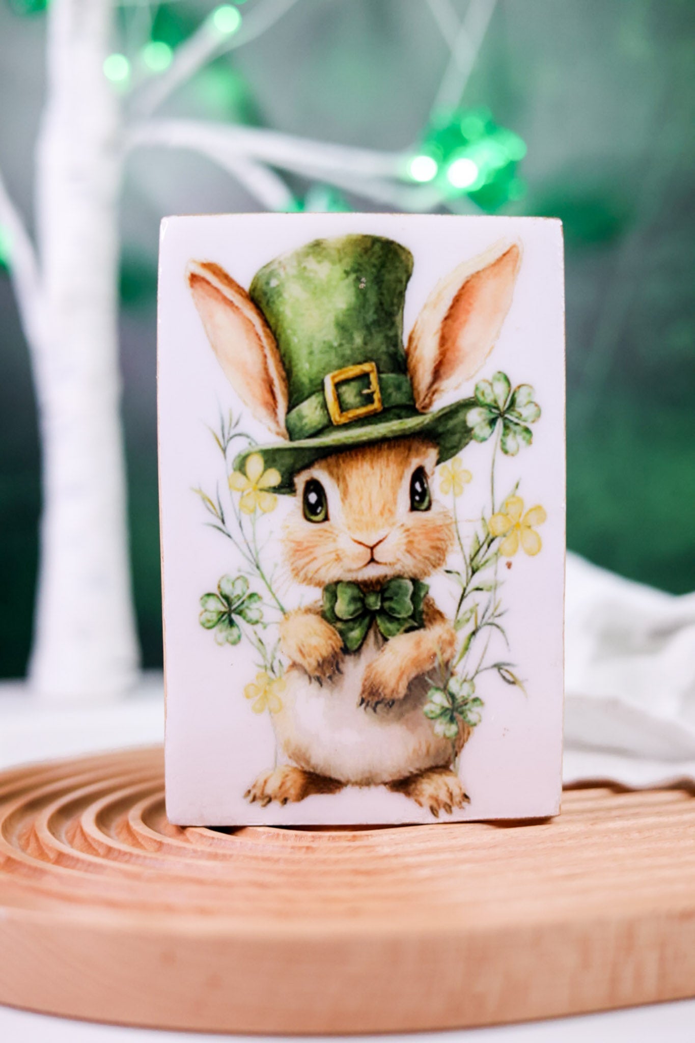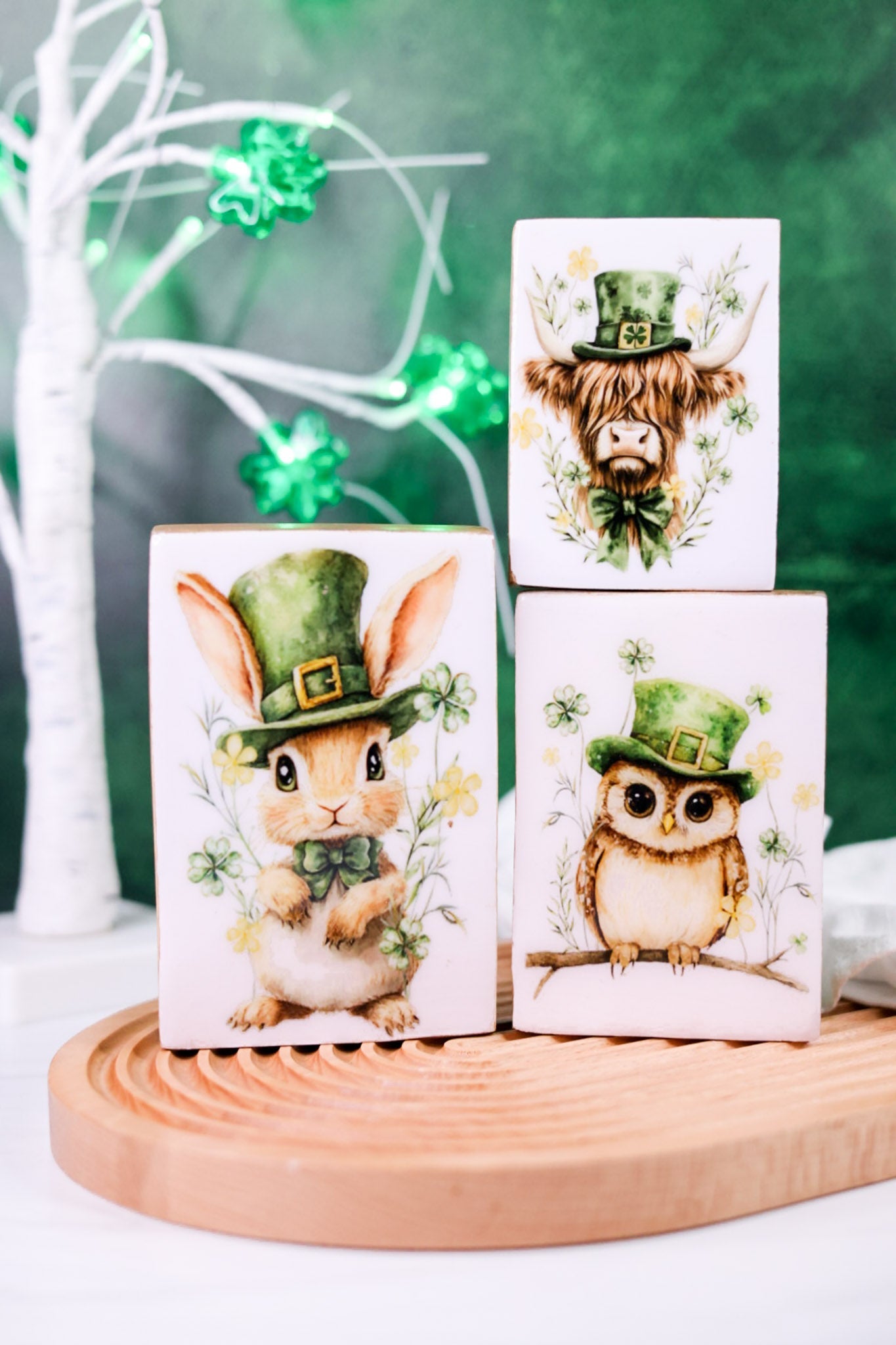 Bring festive cheer to your shelves with these charming wooden blocks featuring adorable animals dressed in St. Patrick's Day finest. Choose from a highland cow, a wise owl, or a cute bunny—each adorned with vibrant enamel graphics that pop against natural wood. Perfect for seasonal tabletop displays, these whimsical pieces add personality to any room and make delightful gifts for holiday enthusiasts.