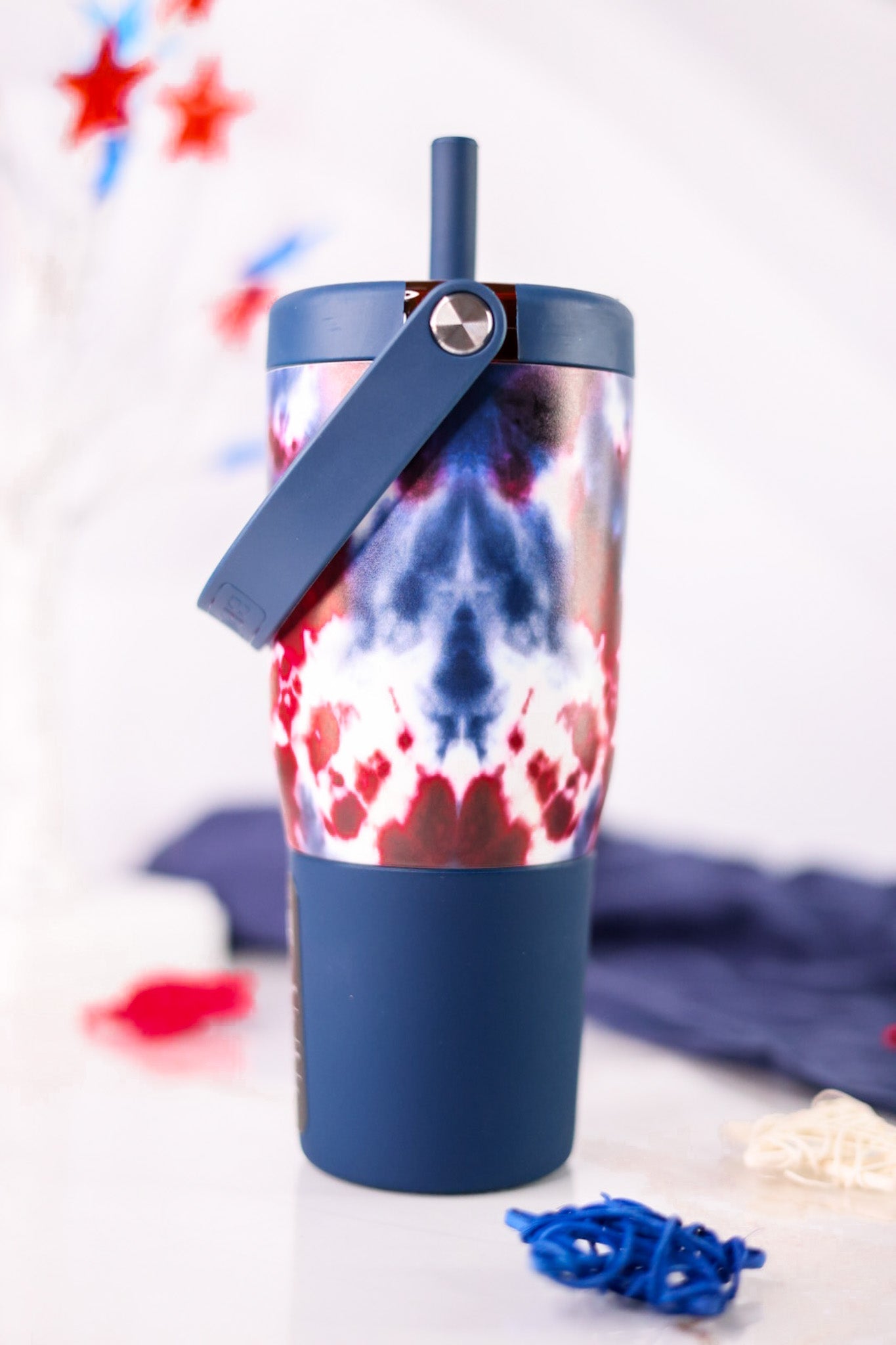 Experience the convenience of the "Star Burst" Resa 25oz tumbler. Its 100% leakproof locking lid, silicone swing handle, and ColdKey™ stainless steel straw provide a secure and spill-free drinking experience. The swappable sleeve protects against dents and dings, while the superior temp retention keeps your drinks cold for over 24 hours. And with most finishes being dishwasher safe, cleaning is a breeze. Please note, Resa Tumblers are not suitable for hot beverages, but they are perfect for both cold and carbonated drinks.