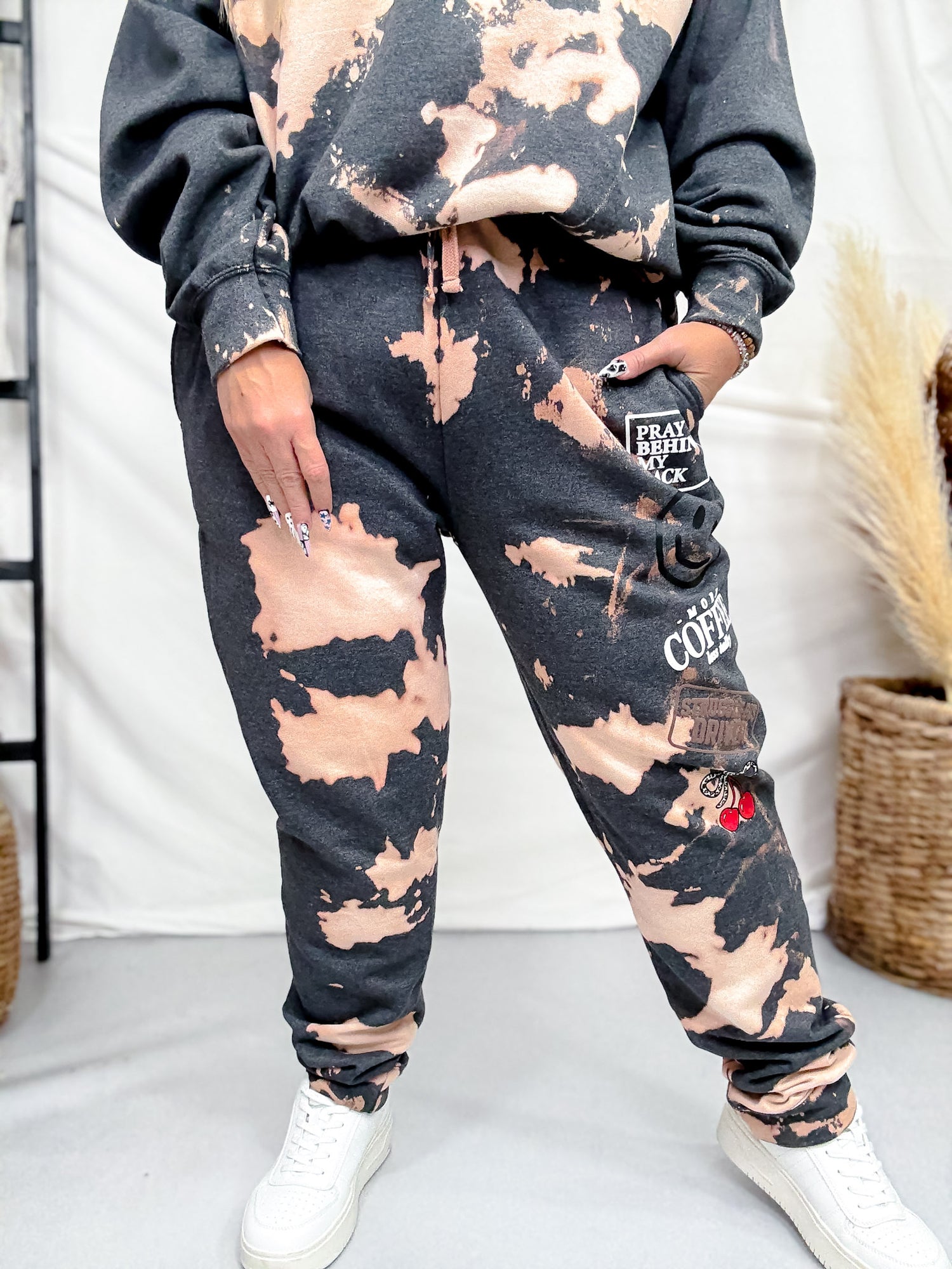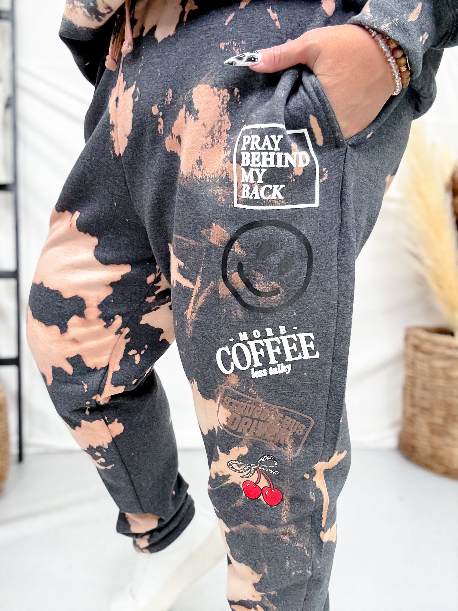 Slip into the ultra-soft Struggle Bus Bomba Joggers, bleach-dyed for a unique look that’s as fun as it is comfy. With charming coffee and cherry graphics, these joggers carry just enough attitude to power you through lounging, spiraling, or running on empty—all while keeping your style effortlessly cute.