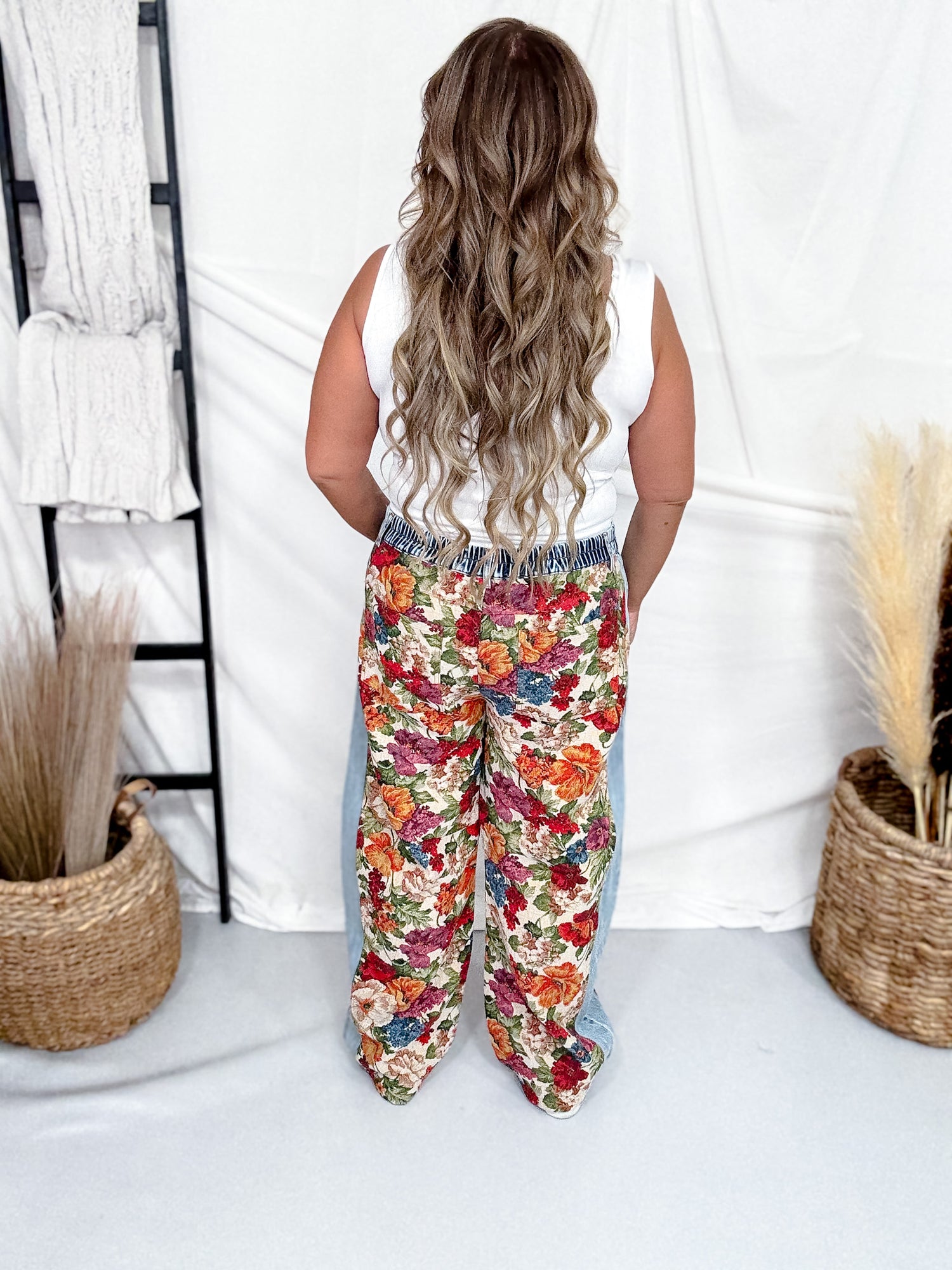 Elevate your closet with these tapestry floral panel denim pants. Featuring bold vintage-inspired blooms and denim contrast side panels, this relaxed straight-leg style brings refined charm and versatility. A standout piece that blends classic artistry with contemporary wearability.