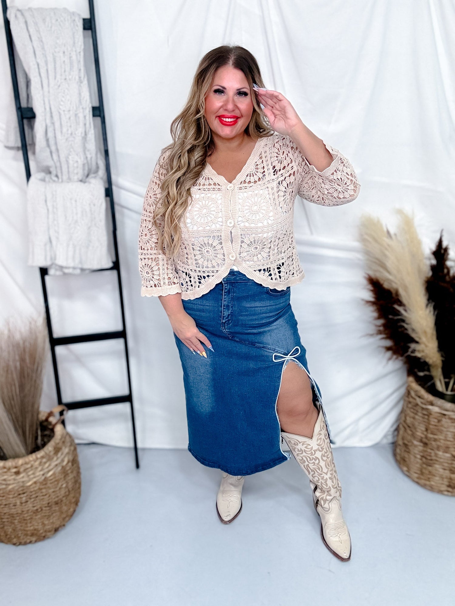 Stay cozy and stylish with our Taupe Crochet Short Button Down Cardigan. Its short length and button down design make it perfect for layering over any outfit. The delicate taupe crochet pattern adds a touch of elegance to your look.