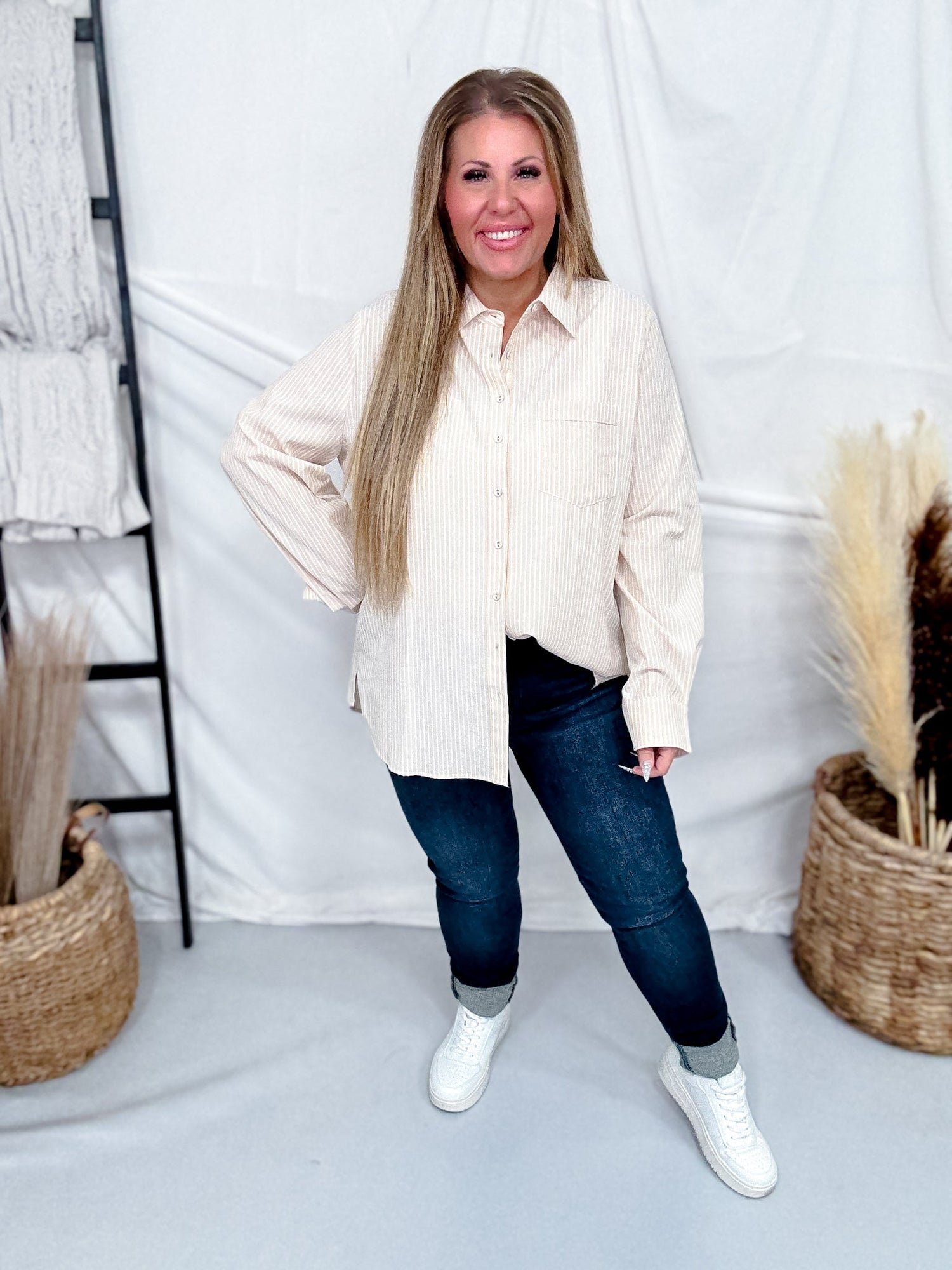 Shopping online doesn't have to be scary! We have models of all shapes and sizes that try on every item to help us give you the most accurate fit! Please see our general sizing charts below to help you with our most popular brands from White Birch to Judy Blue!