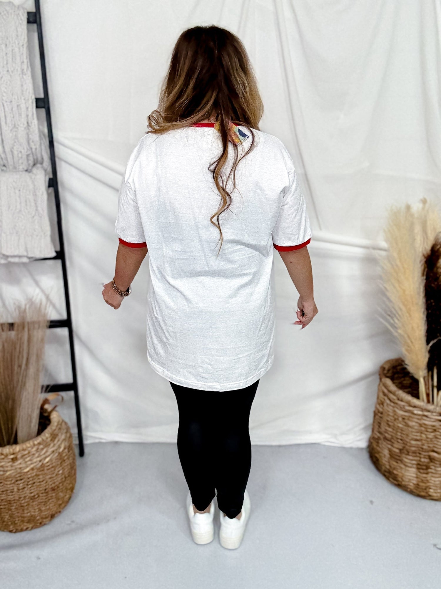This playful vintage ringer tee features a crisp white base with vibrant red trim on the sleeves and collar, making it perfect for standing out in any casual setting. The bold "Cowgirl Gang" graphic captures a fun, rebellious spirit that adds character to your everyday look. Crafted from soft, breathable fabric, it offers all-day comfort whether you’re heading to a rodeo or just hanging out with friends. Embrace your inner cowgirl and bring a touch of retro charm to your wardrobe with this standout short sleeve t-shirt.