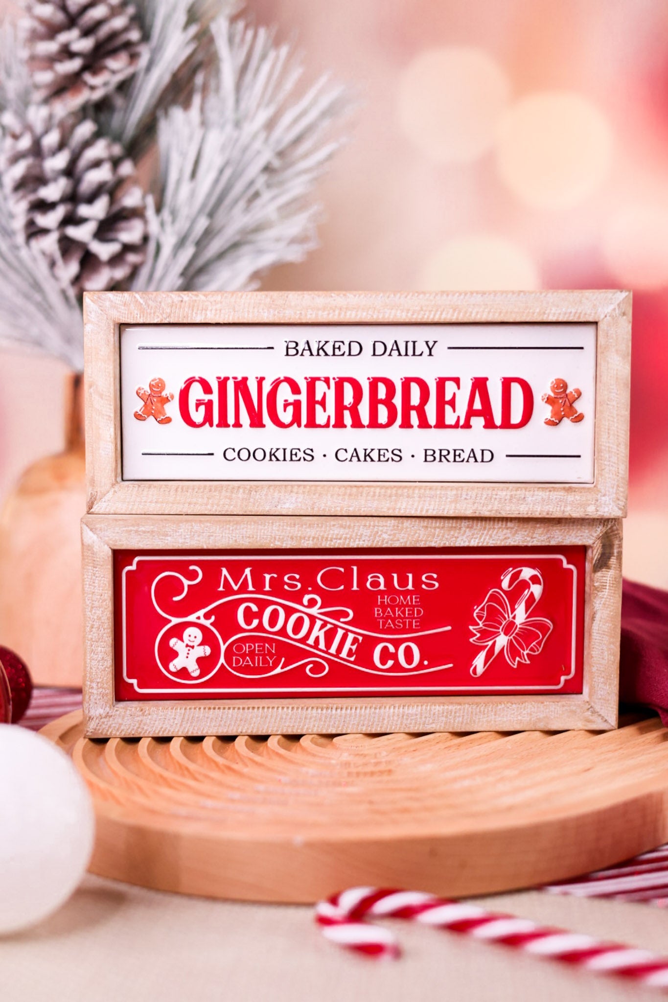 Add a festive touch to your holiday decor with these charming wood framed enamel signs! Featuring two styles inspired by gingerbread cookies and the Mrs. Claus Cookie Co. theme, they bring sweet holiday cheer to any room. Perfect for kitchens, entryways, or cozy corners, these signs celebrate the joy of Christmas baking with a whimsical flair.