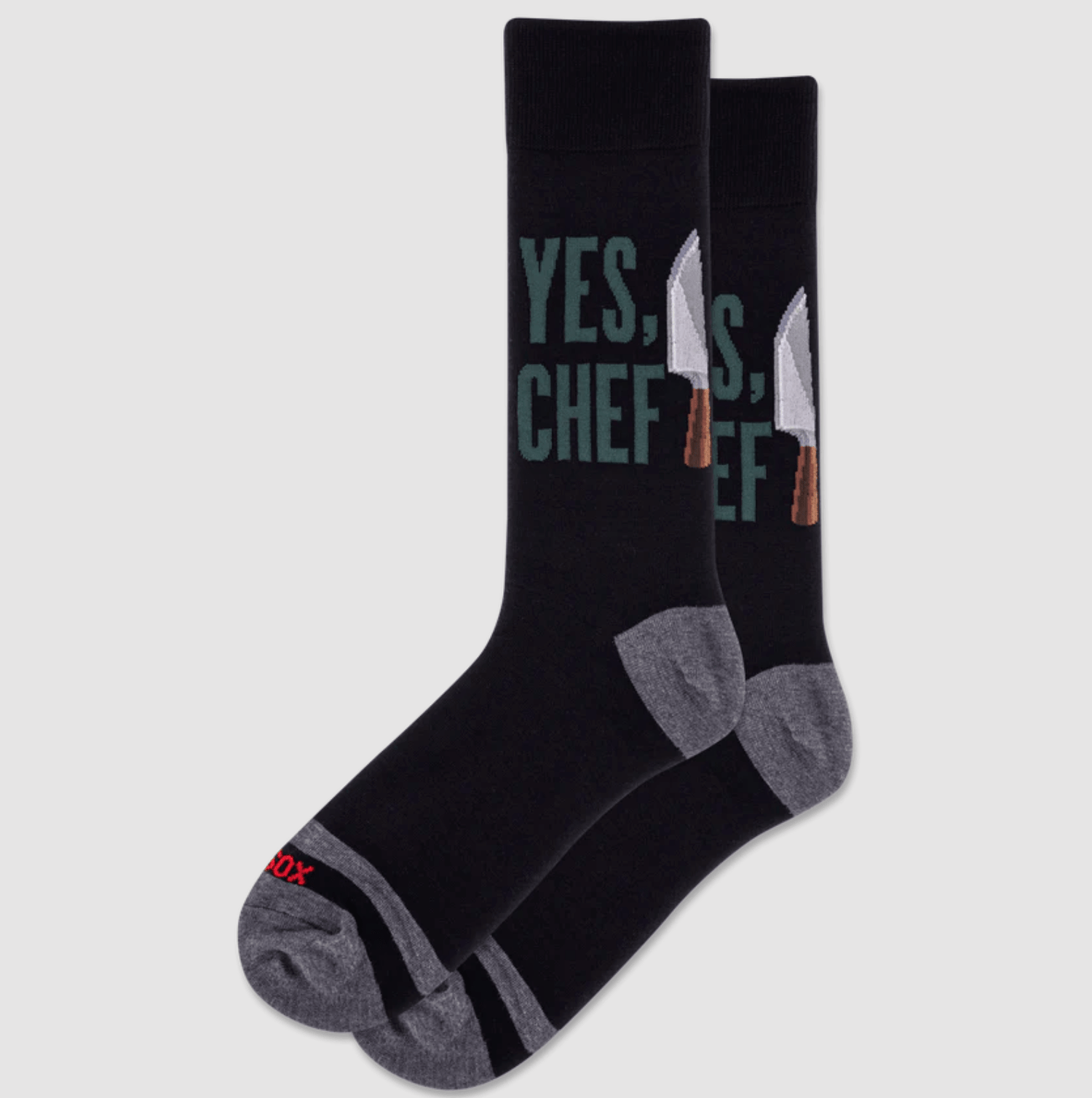 You’re the boss of the kitchen — or at least the socks. These black, grey and green “Yes, Chef” socks show you mean business, with sharp knives and sharper style. Perfect for the culinary pro or anyone who’s ready to slice through the day with confidence. Just don’t let the socks intimidate the soufflé.